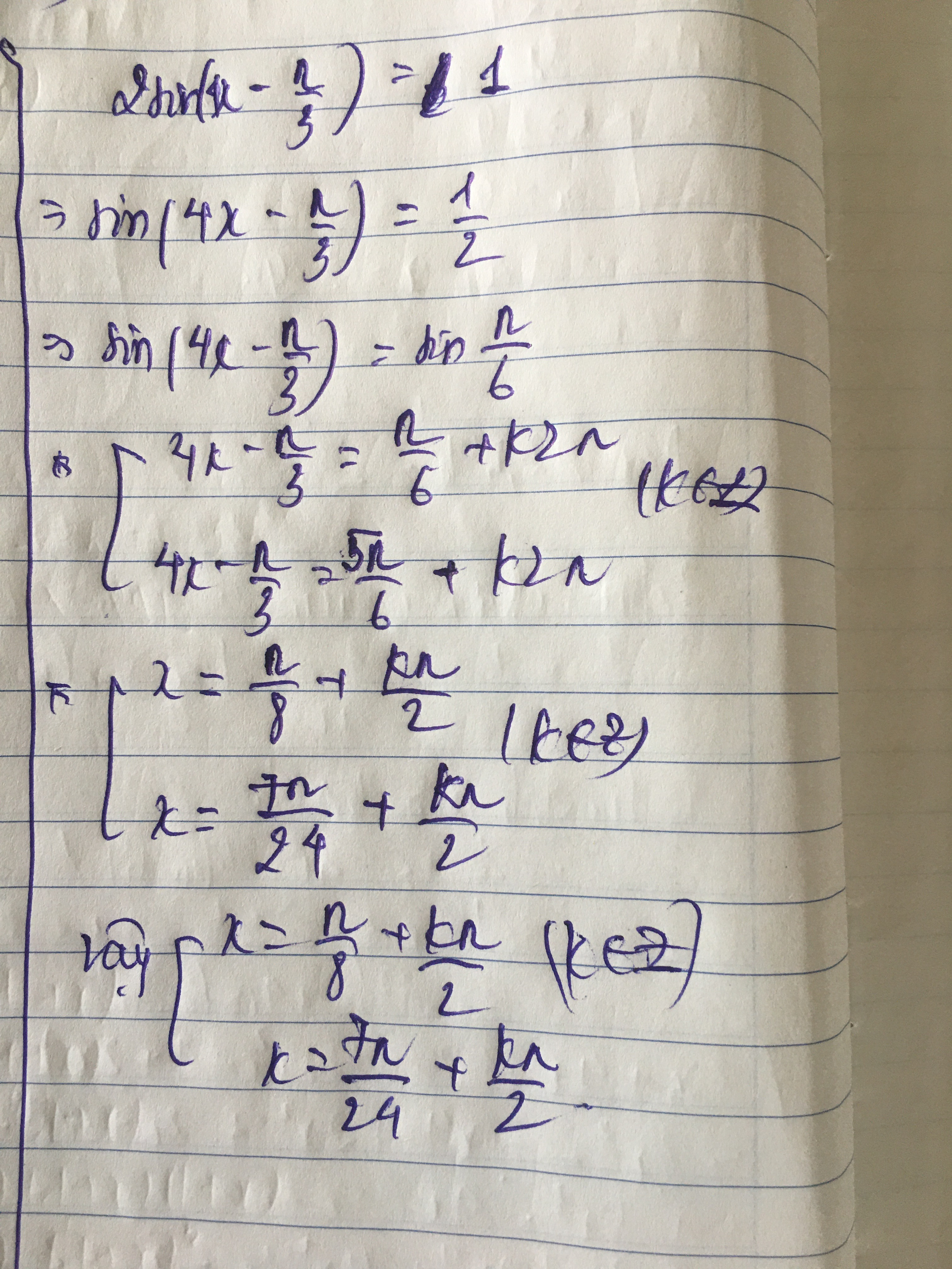Giải các phương trình sau : 2sin (4x-π/3) -1=0