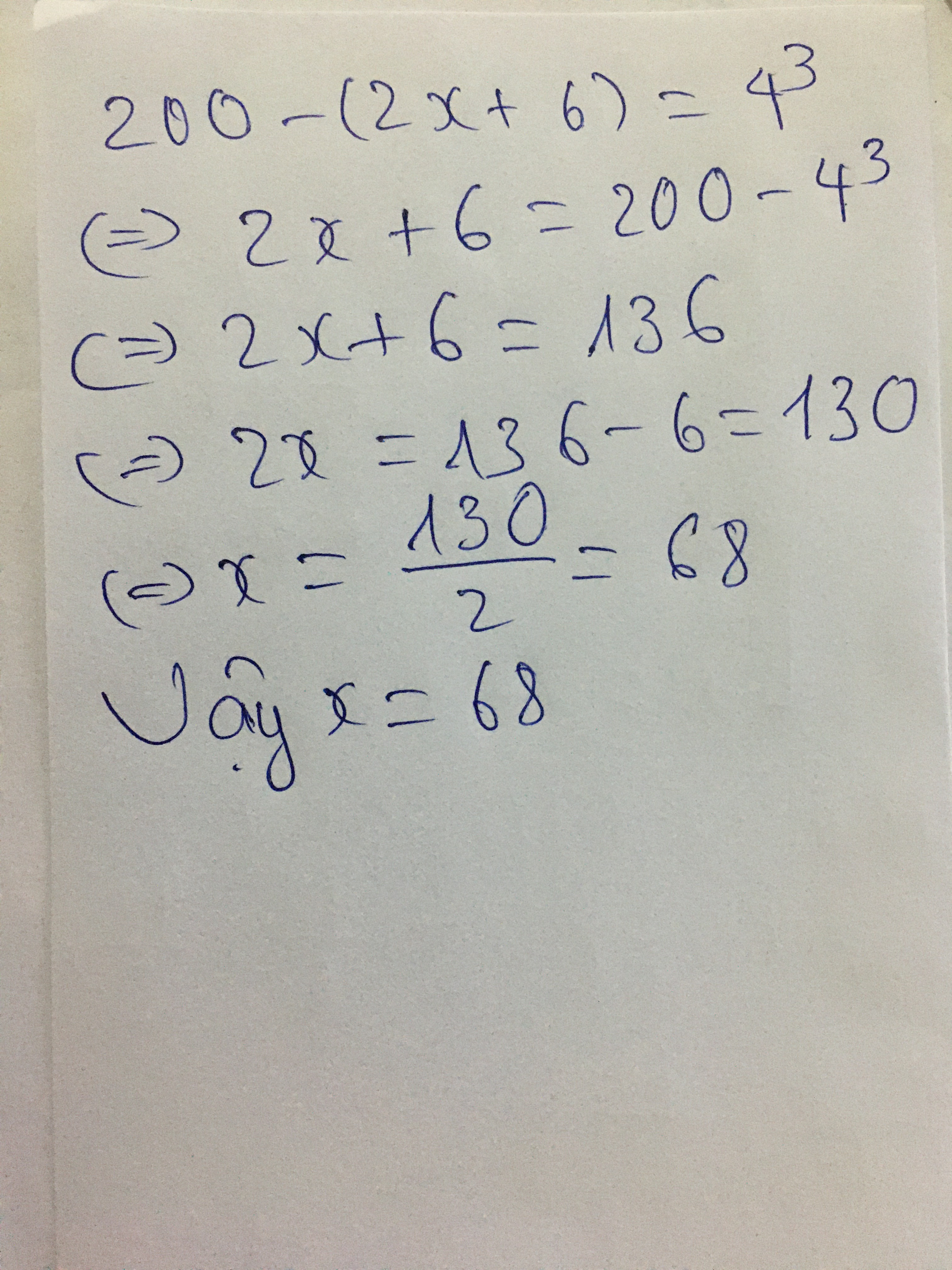 200- (2x + 6) =4 mũ 3