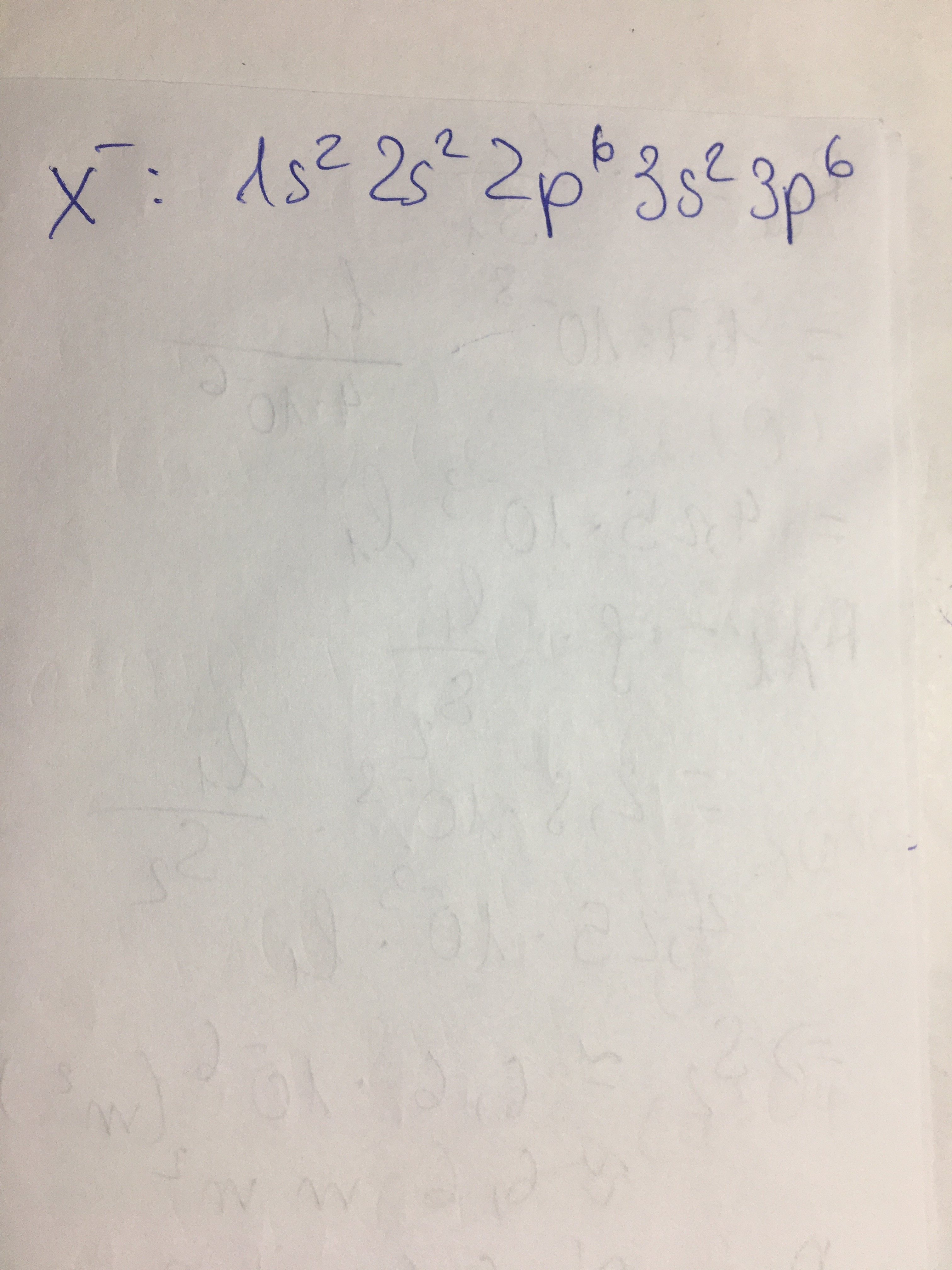Nguyên tử của nguyên tố X có cấu hình electron là 1s2s2p3s3p5.Cấu hình elecrton nguyên tử của ion X- là: