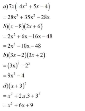 a) 7x( 4x2 + 5x - 4) b) ( x - 8 ) ( 2x + 6 )