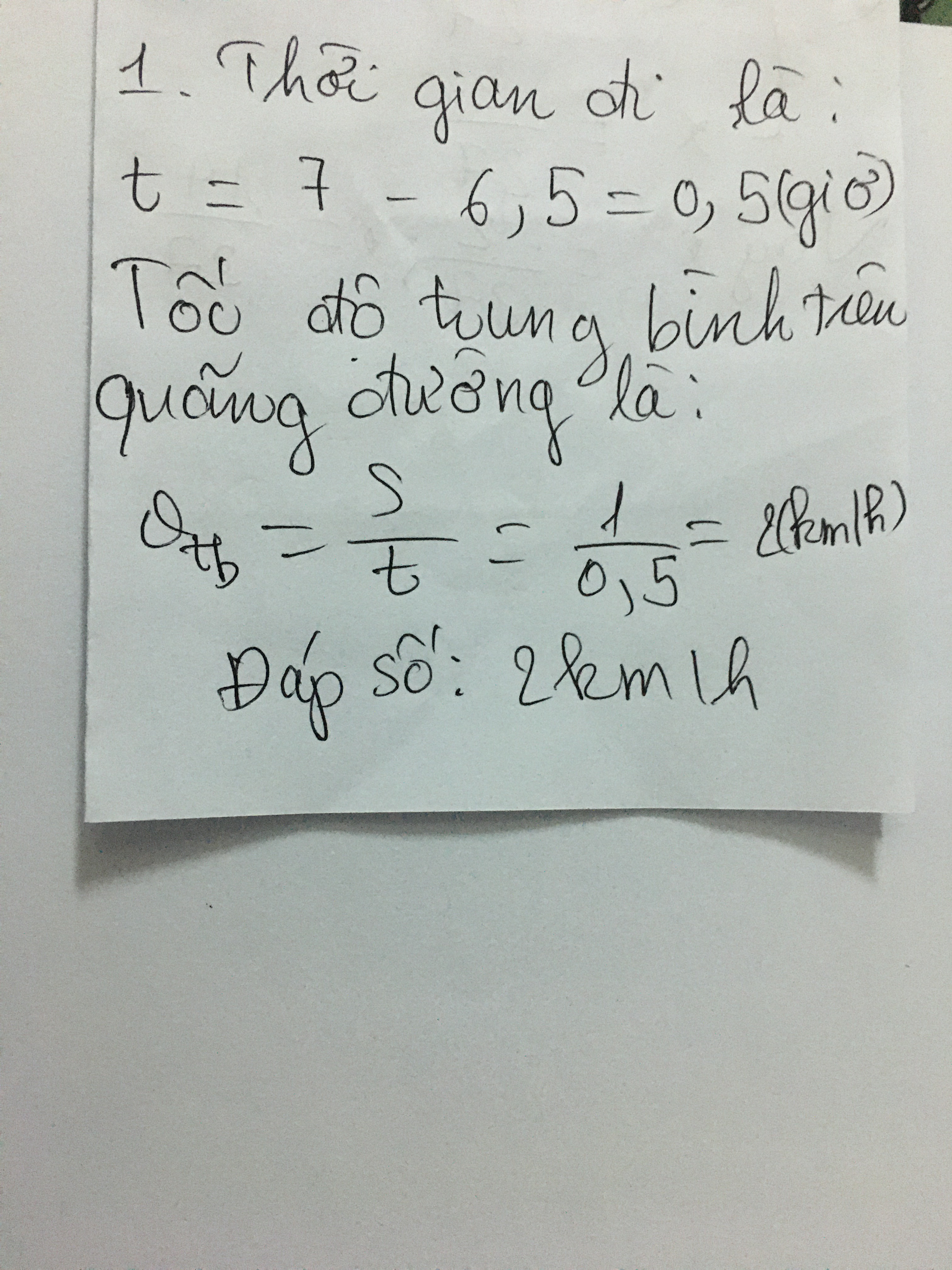 1.Lúc 6 giờ 30 phút, Bạn Nhi chuyển động thẳng đều từ nhà tới trường đi hết quãng đường dài 1 km. Tính tốc độ trung bình của cả quãng đường mà Nhi đi được. Biết Bạn Nhi tới trường lúc 7 giờ.