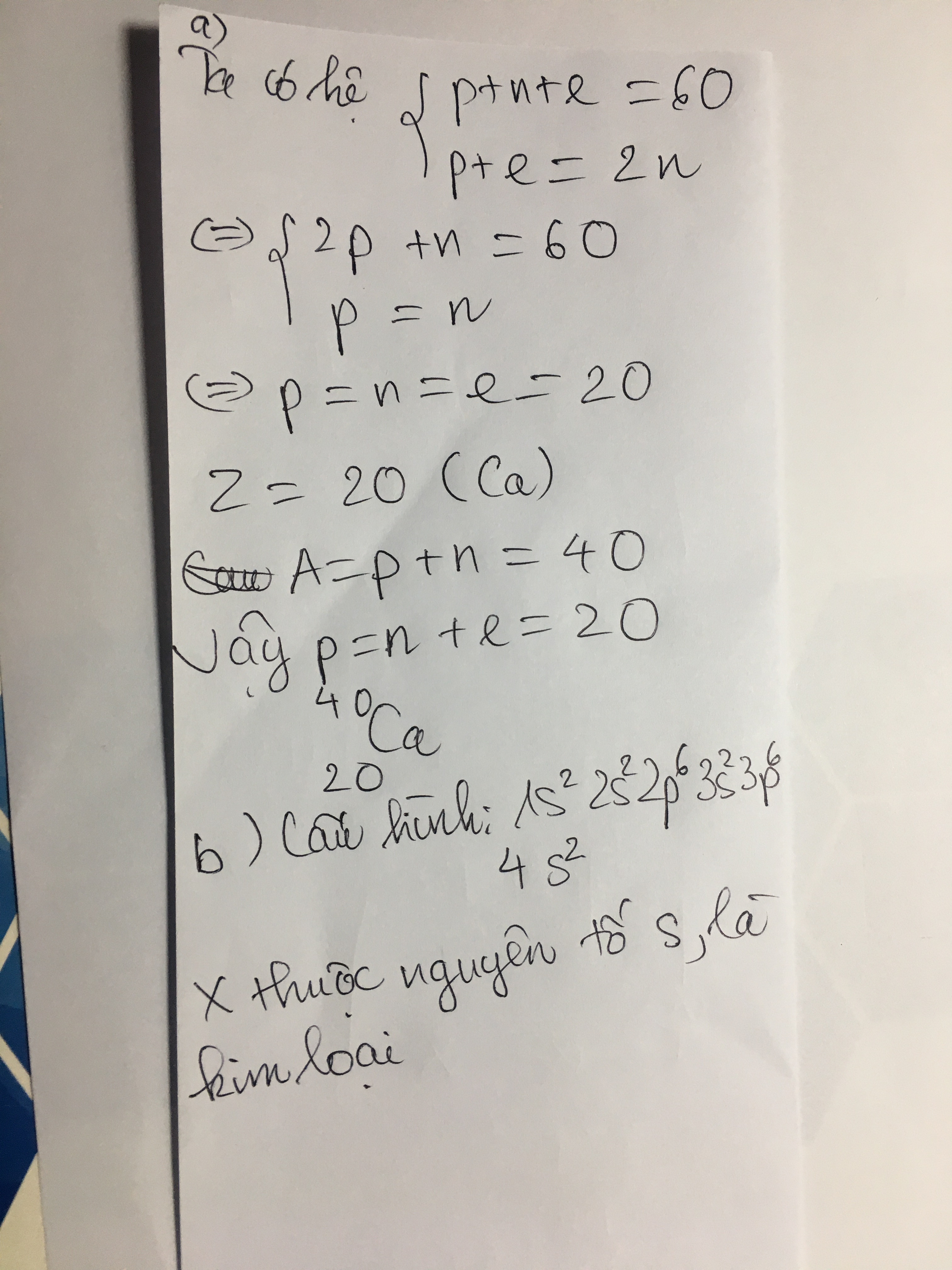 a)Nguyên tử của nguyên tố x có tổng số hạt là 60
