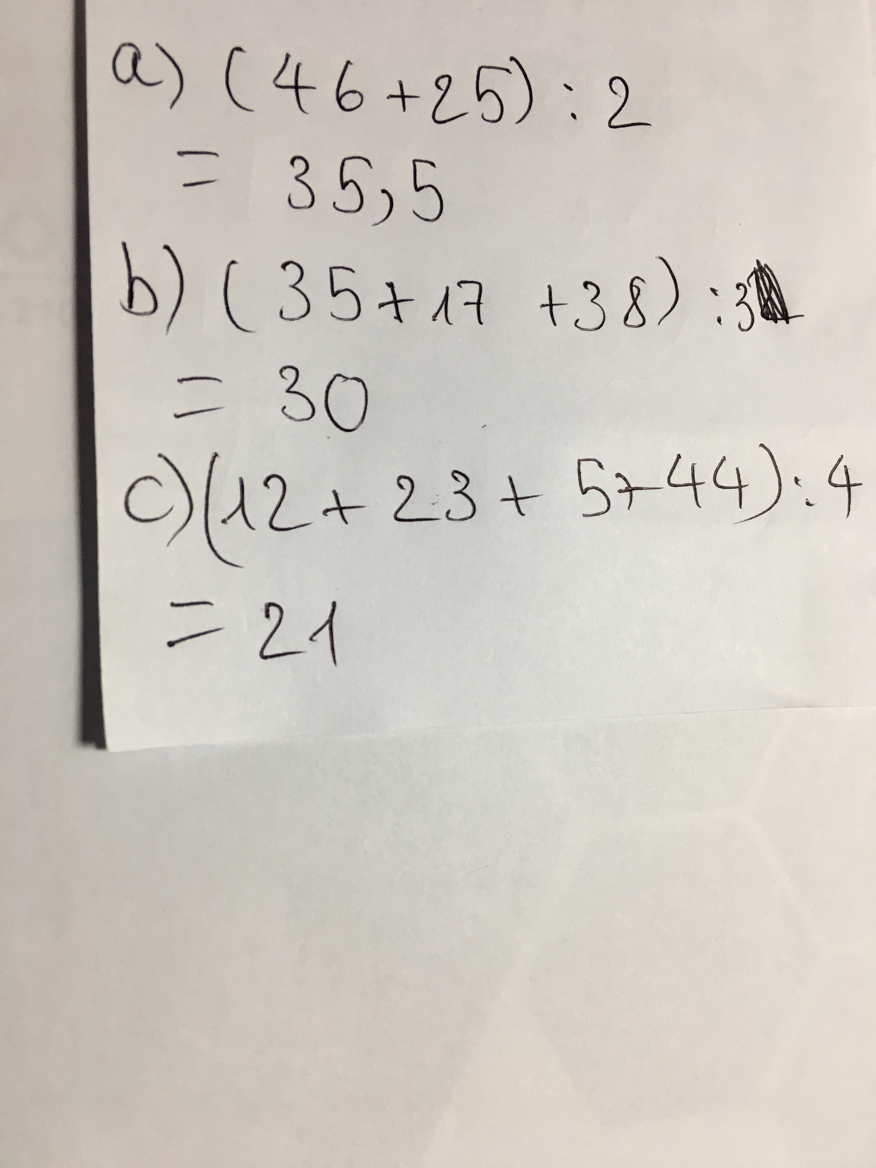 c) Trung bình cộng của 12;23;5 và 44 là: