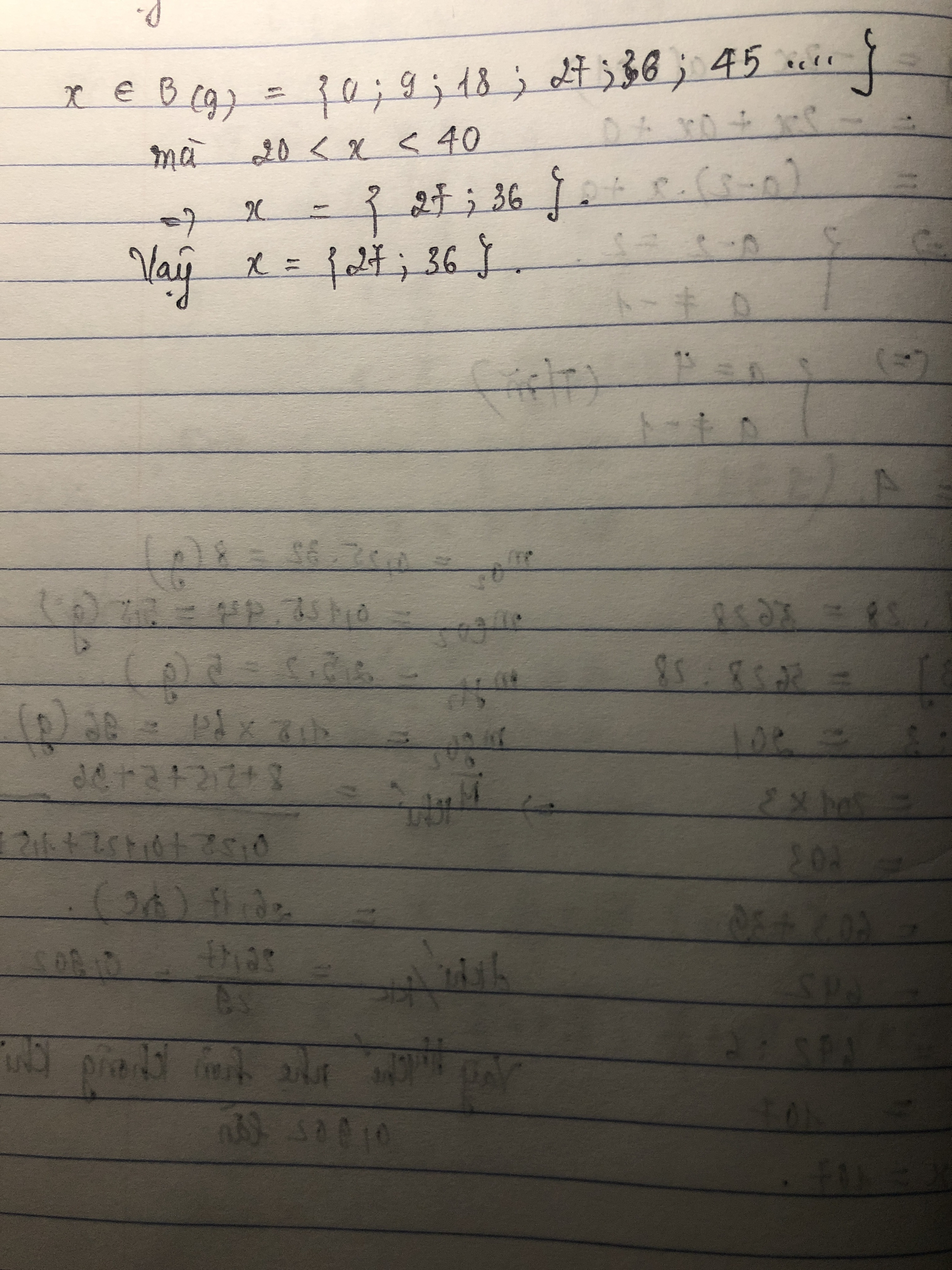 Tìm số tự nhiên x biết x là bội của 9 và 20 <x <40