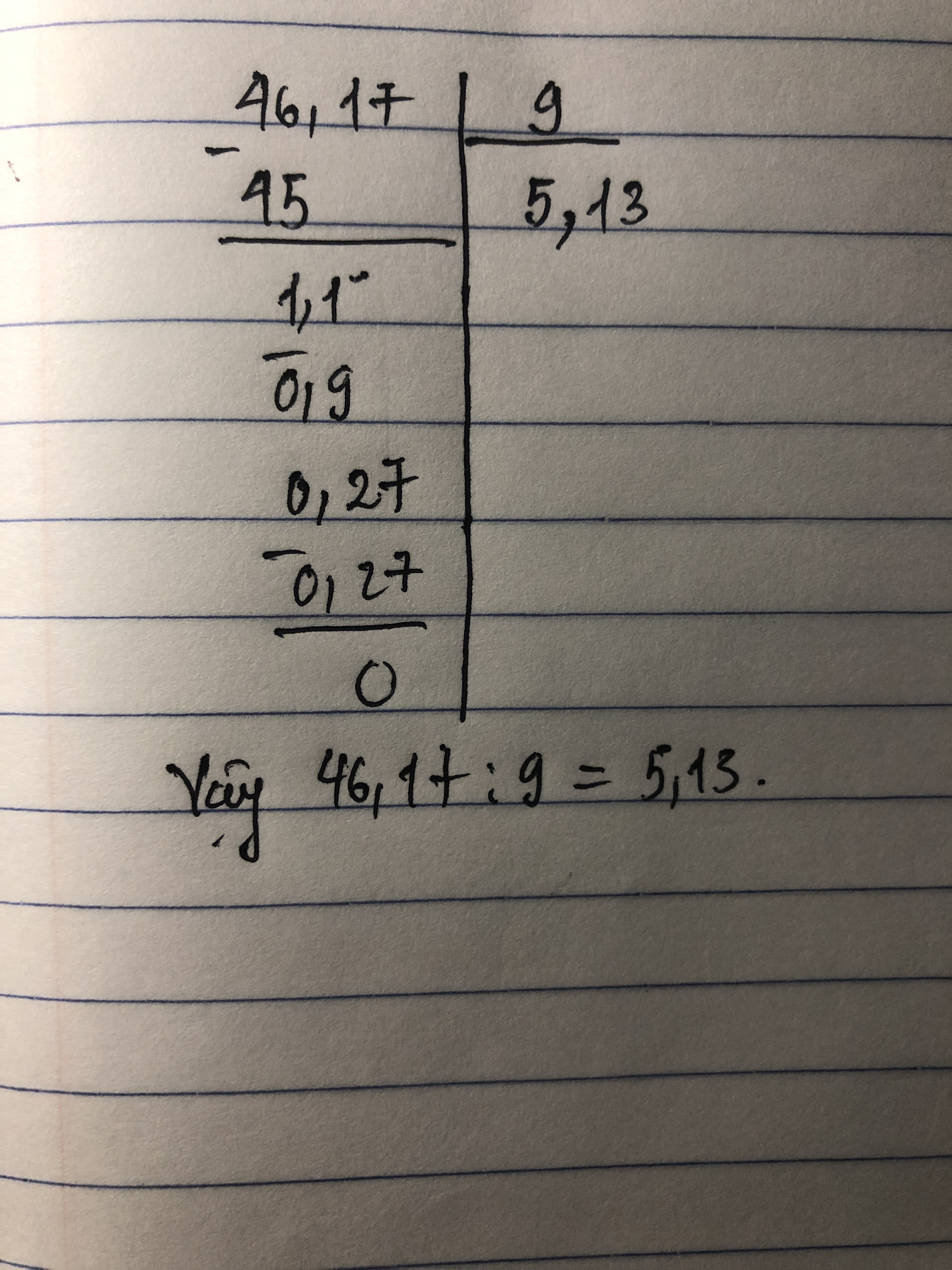 Đặt tính rồi tính 46,17:9