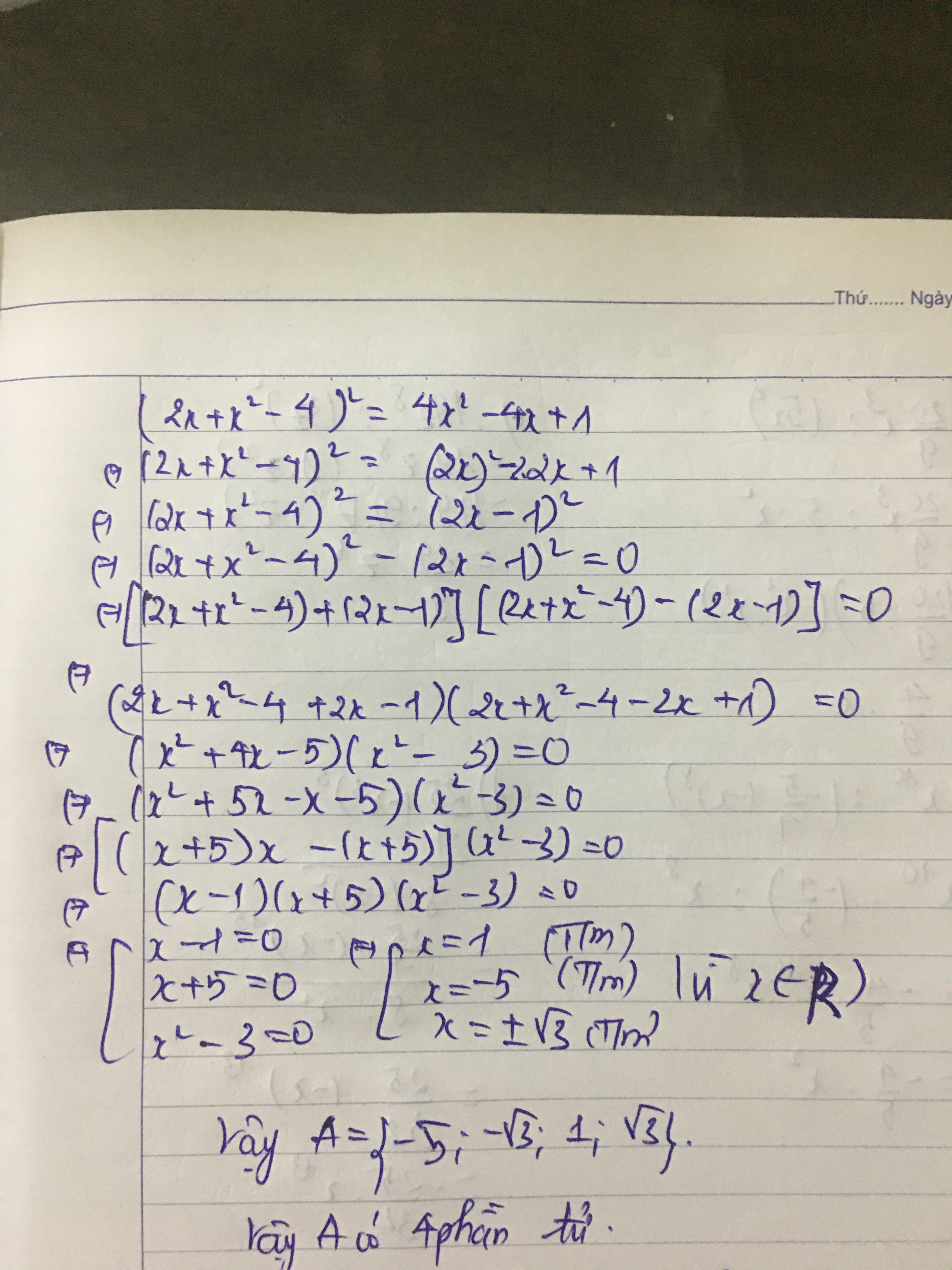 Số phần tử của A là {x ∈ R\ (2x + x−4)= 4x− 4x + 1}