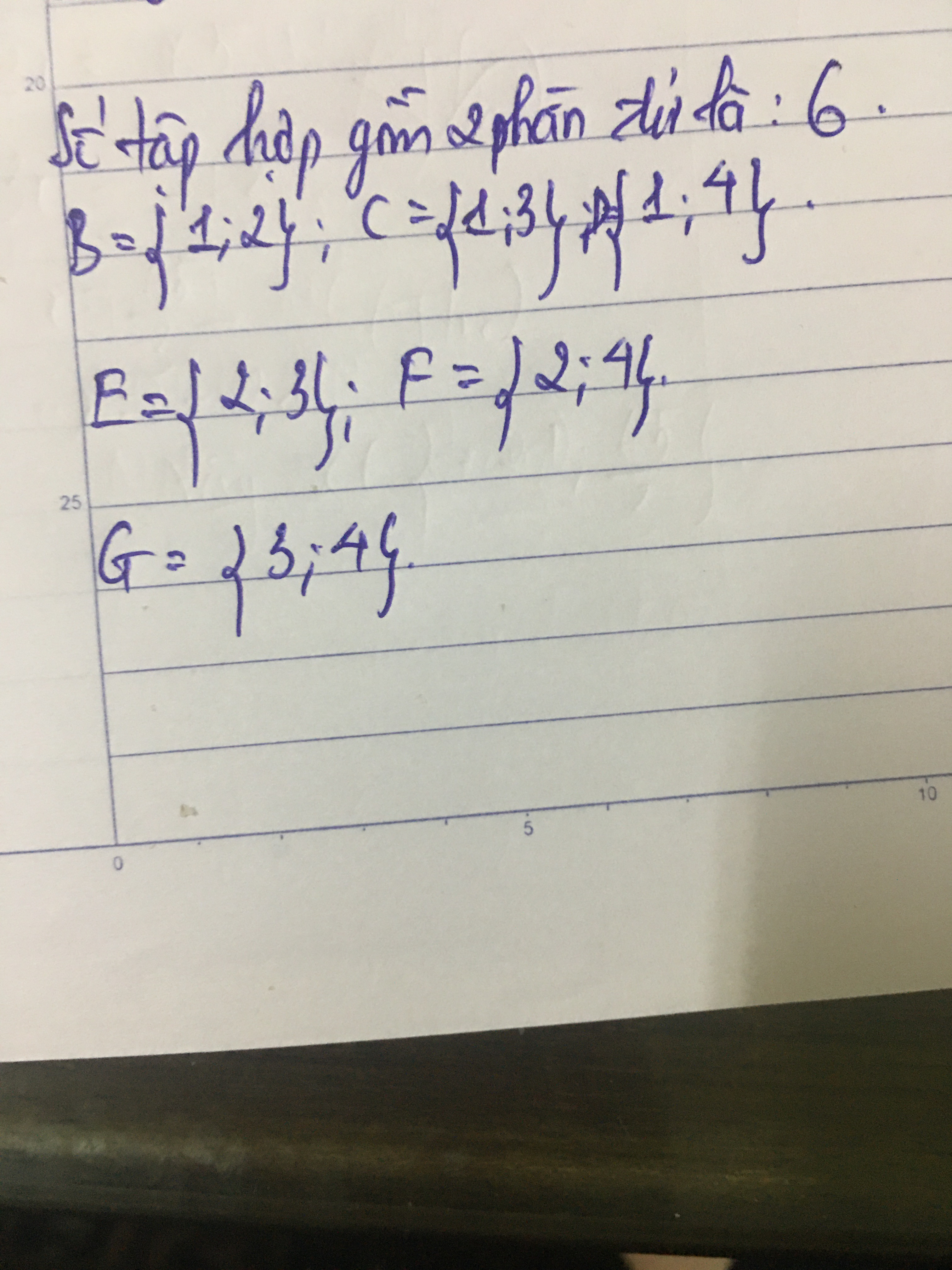 Cho tập hơp A={1;2;3;4}. Số tập hợp con gồm 2 phần tử của tập hợp A là?