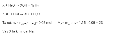 hòa tan hoàn toàn 1,15g kim loại kiềm X vào nước thu được dung dịch Y để trung hòa Y cần vừa đủ 50g dung dịch Hcl 3,65%_viết phương trình hóa hocn và xác định X