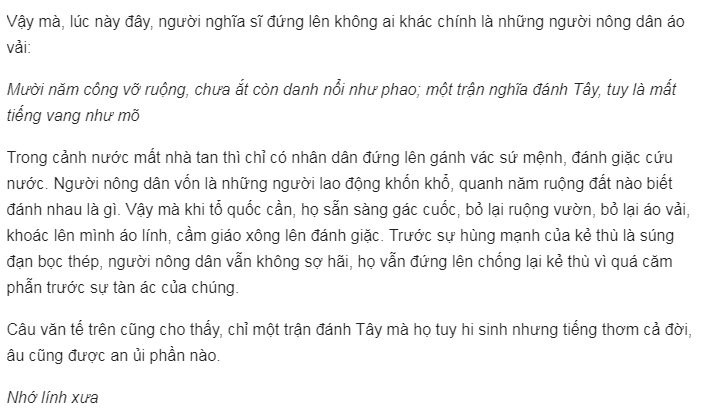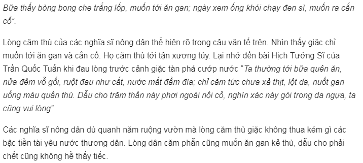 Họ “Phập phồng” chờ mong quan quân triều đình thế nhưng tất cả nhận lại chỉ là “tiếng phong hạc” kia lại làm các bậc quan nhân hoảng sợ. Trong khi đó, lòng căm thù bọn giặc cướp nước lại hừng hực và rực cháy trong tim những người nông dân chân lấm tay bùn kia.