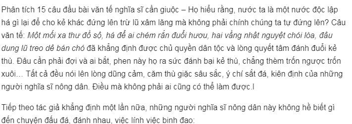 Hai câu thơ 14 và 15 đã thể hiện một cách rất sống động và chân thực hình ảnh người nông dân nghĩa sĩ trong giây phút công đồn :