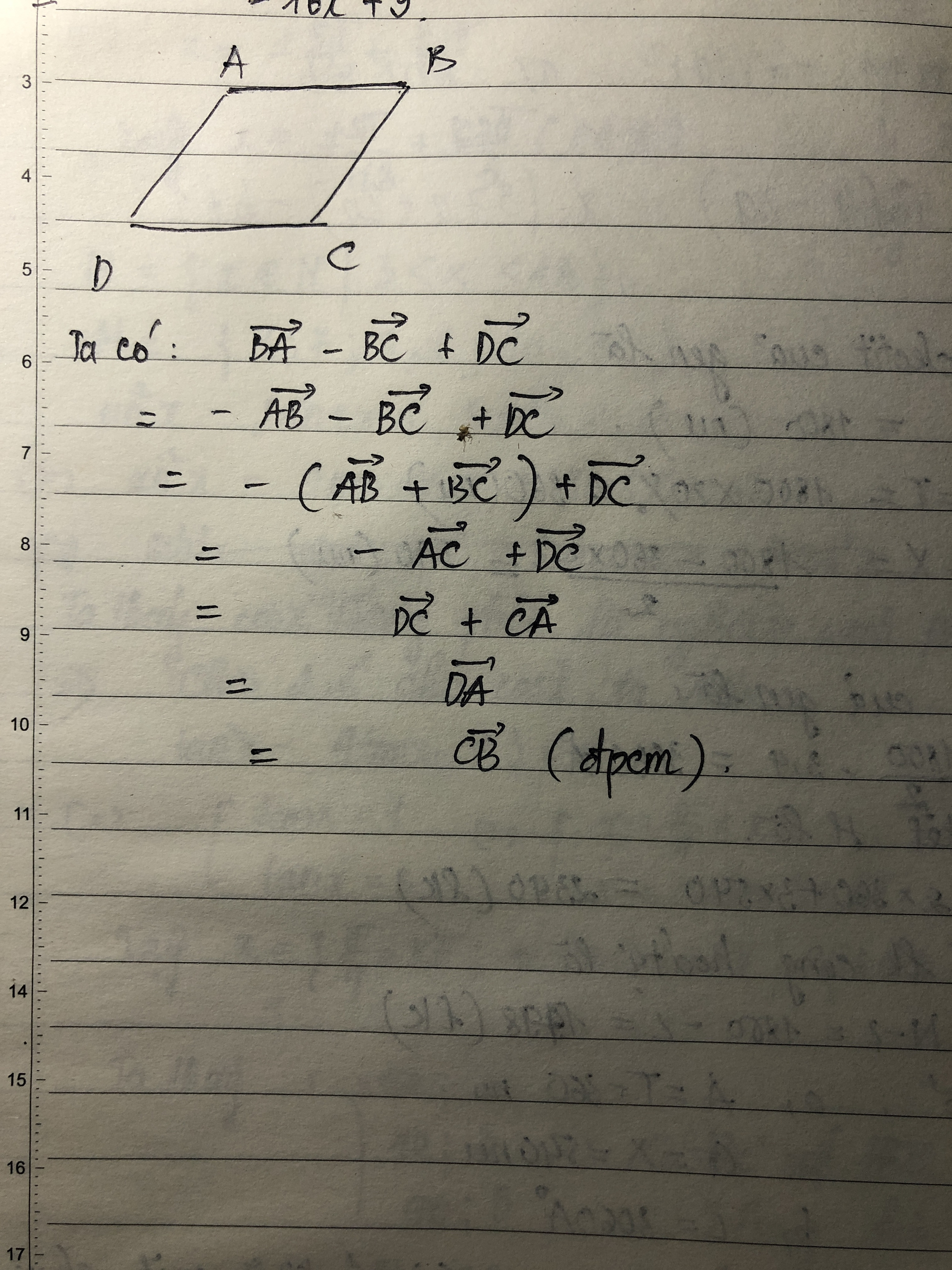 BA→-BC→+DC→=BA→+CB→-CD→=CD→ +CB→-CD→=CB→ (đpcm)
