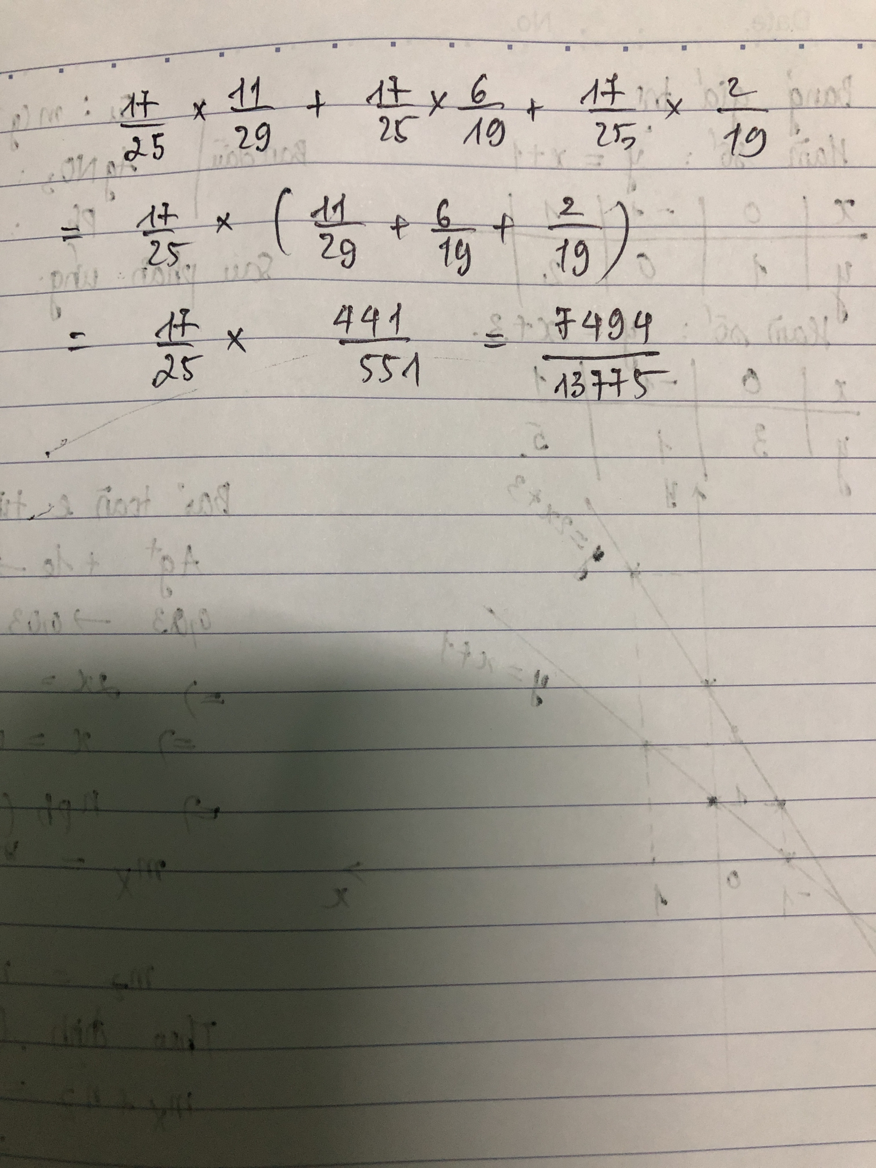 17/25 x 11/29 + 17/25 x 6/19 +17/25 x 2/19 giải giúp tớ với ❤️