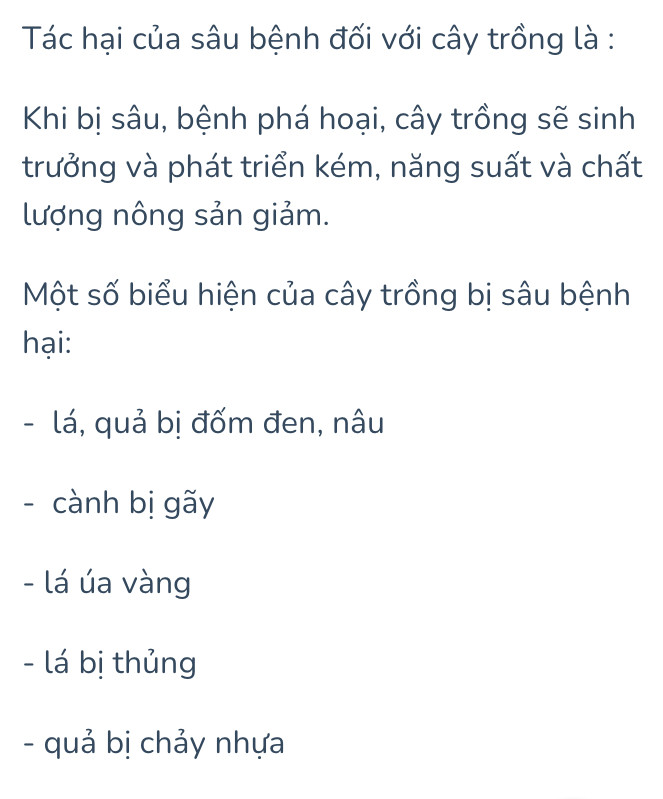 Gây bện cho cây trồng như ủng, lá vàng, thủng lá, sần sùi ,...