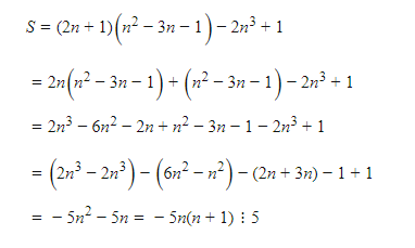 Chứng minh giá trị biểu thức (2n+1)(n²-3n-1)-2n³+1 luôn chia hết cho 5 bới mọi số nguyên là n