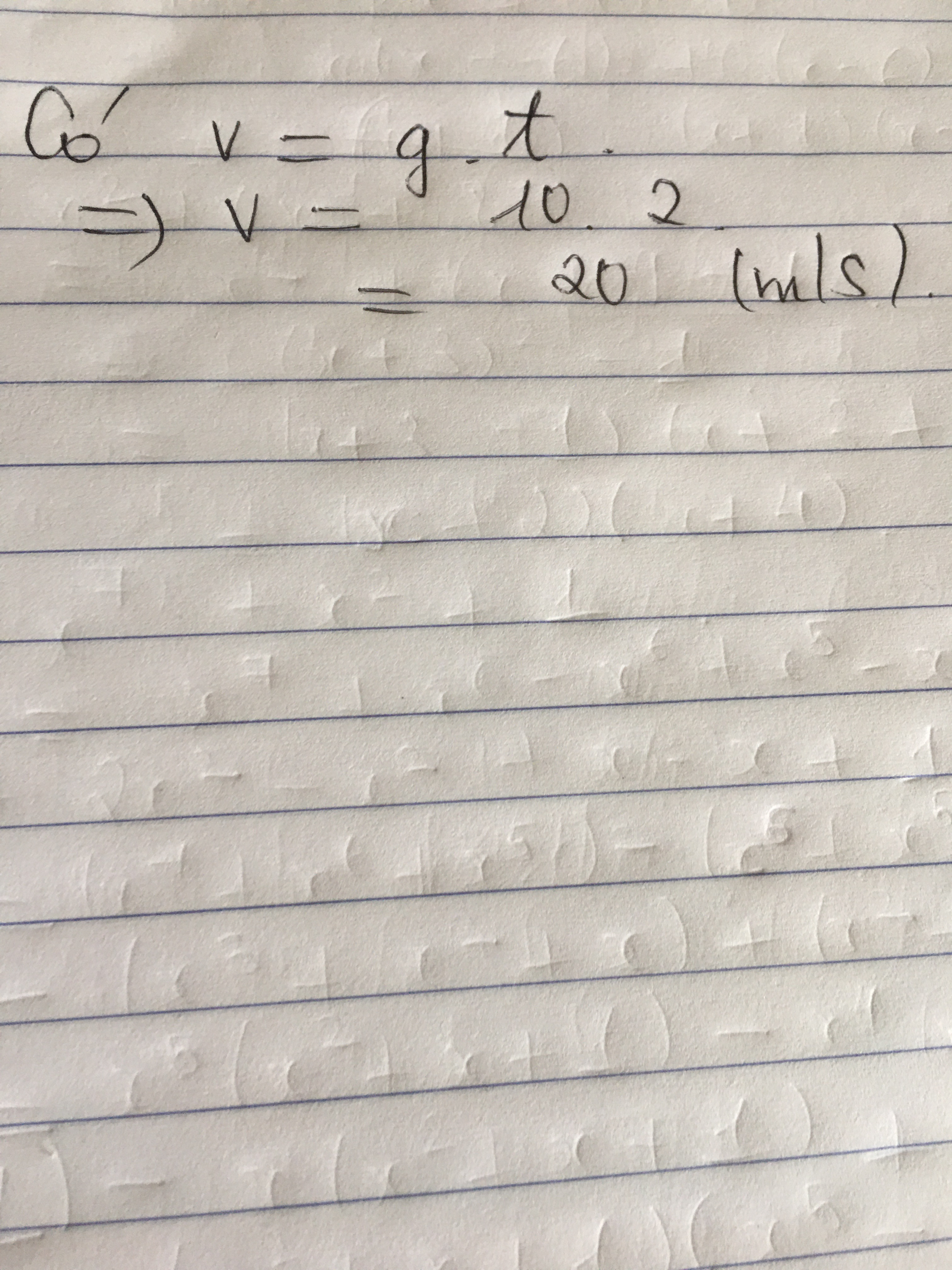 Một vật nặng rơi tự do từ độ cao 45m xuống đất. Lấy g= 10m/s2. Tính vận tốc của vật sau thả được 2s