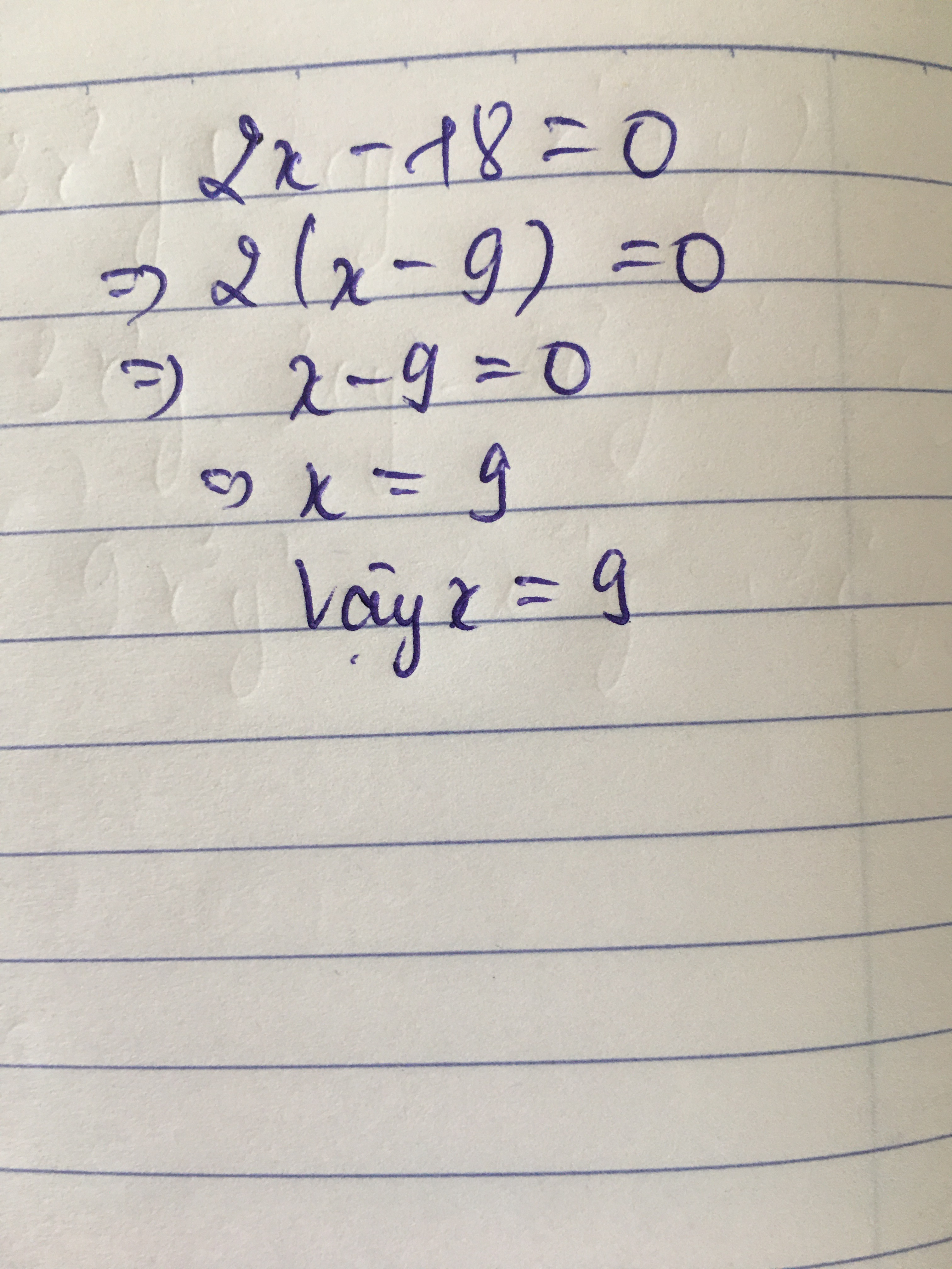 `=> 2 . ( x - 9 ) = 0`