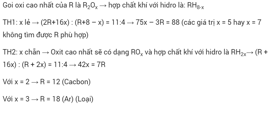 tỉ lệ khối lượng phân tử giữa oxit cao nhất của nguyên tố R và hợp chất khí với hidro bằng 11 : 4 . khối lượng mol nguyên nguyên tử của R bằng bao nhiêu ?