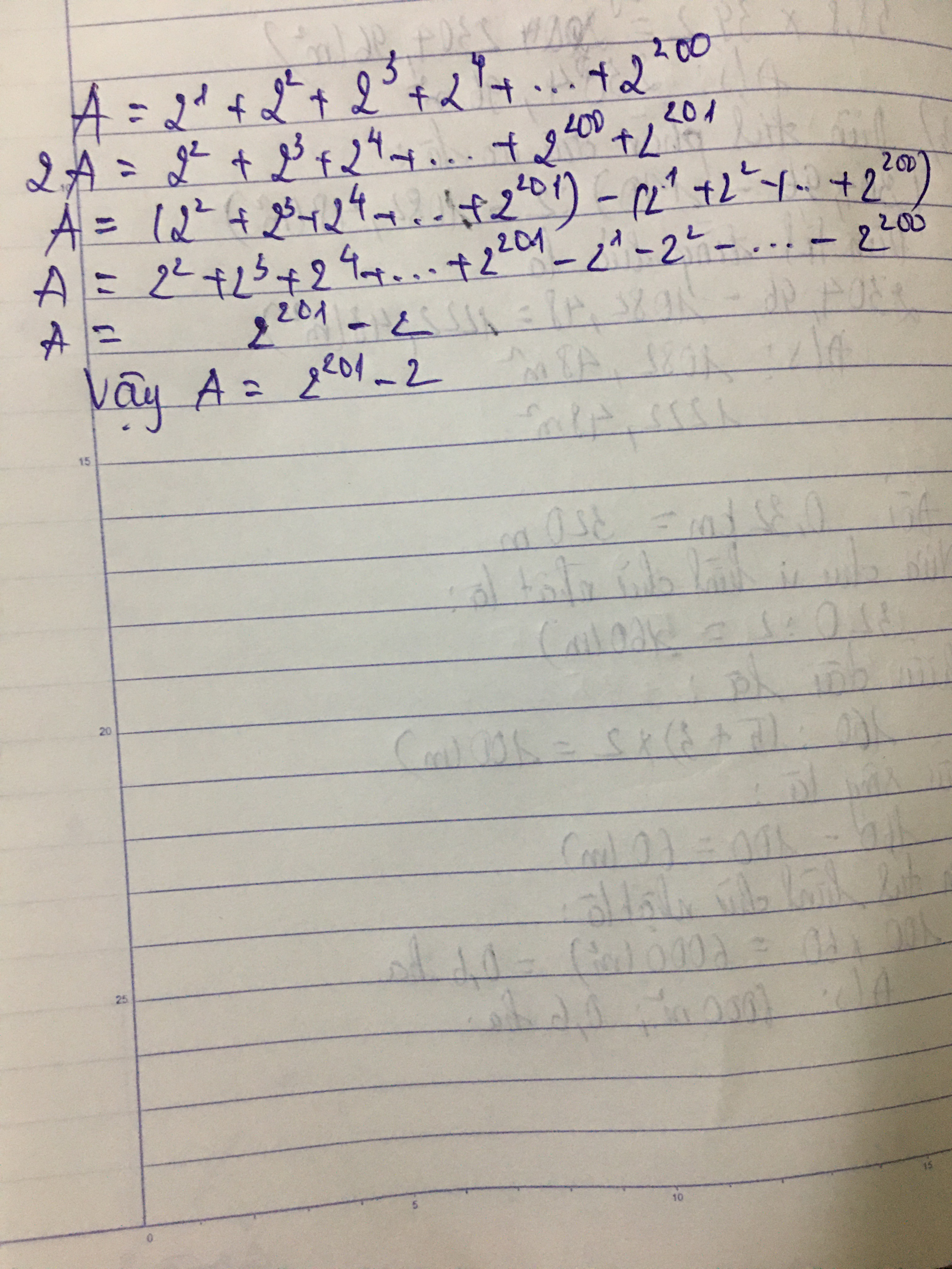 A = 2 mũ 1 + 2 mũ 2 + 2 mũ 3 + 2 mũ 4 .... + 2 mũ 200