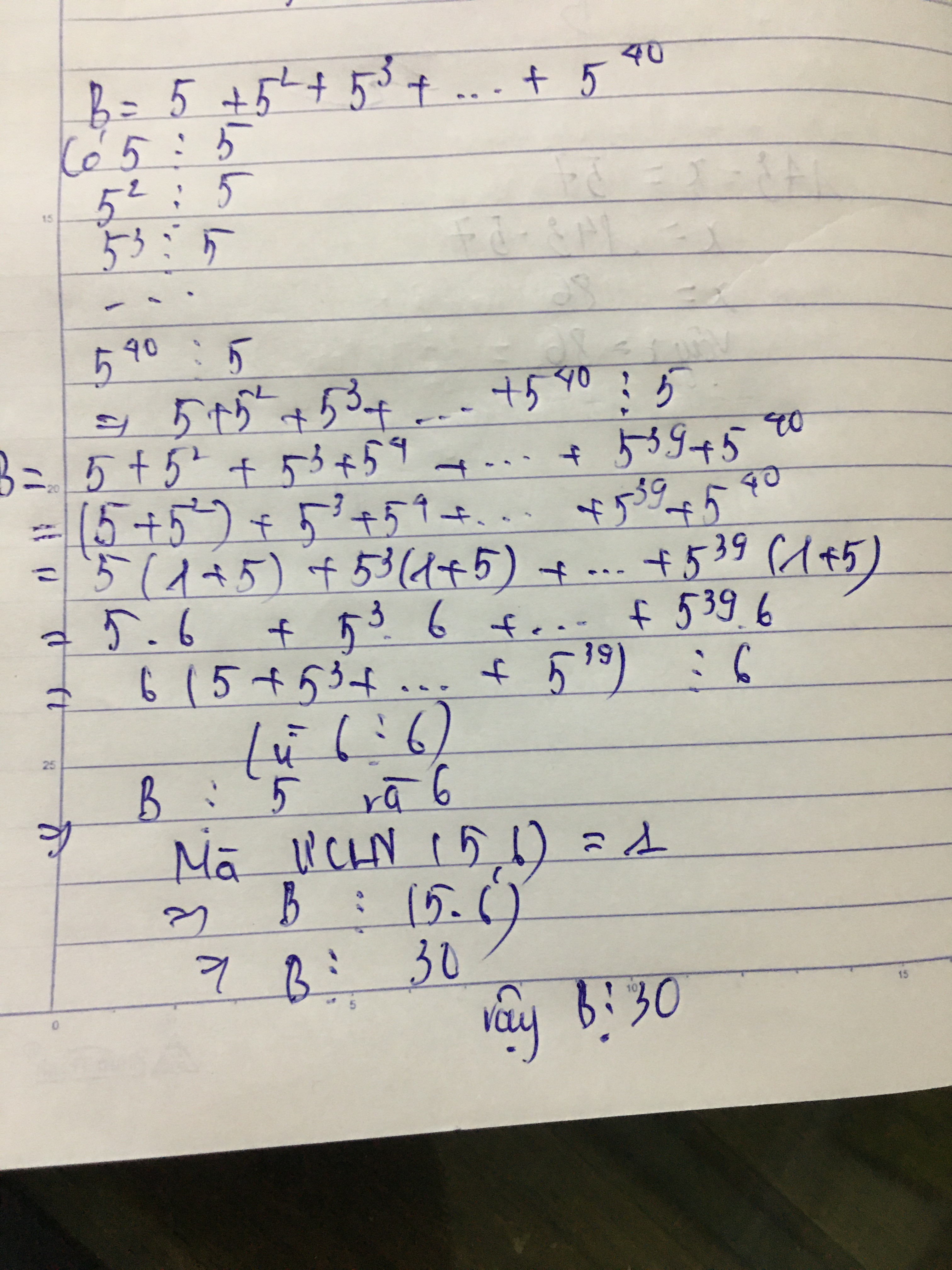 B= 5+5mũ 2+5 mũ 3+......+ 5 mũ 40