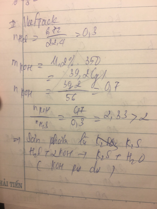 Dẫn 6,72 lít khí H2S vào 350g dung dịch KOH 11,2% . Sản phẩm sau phản ứng là ?