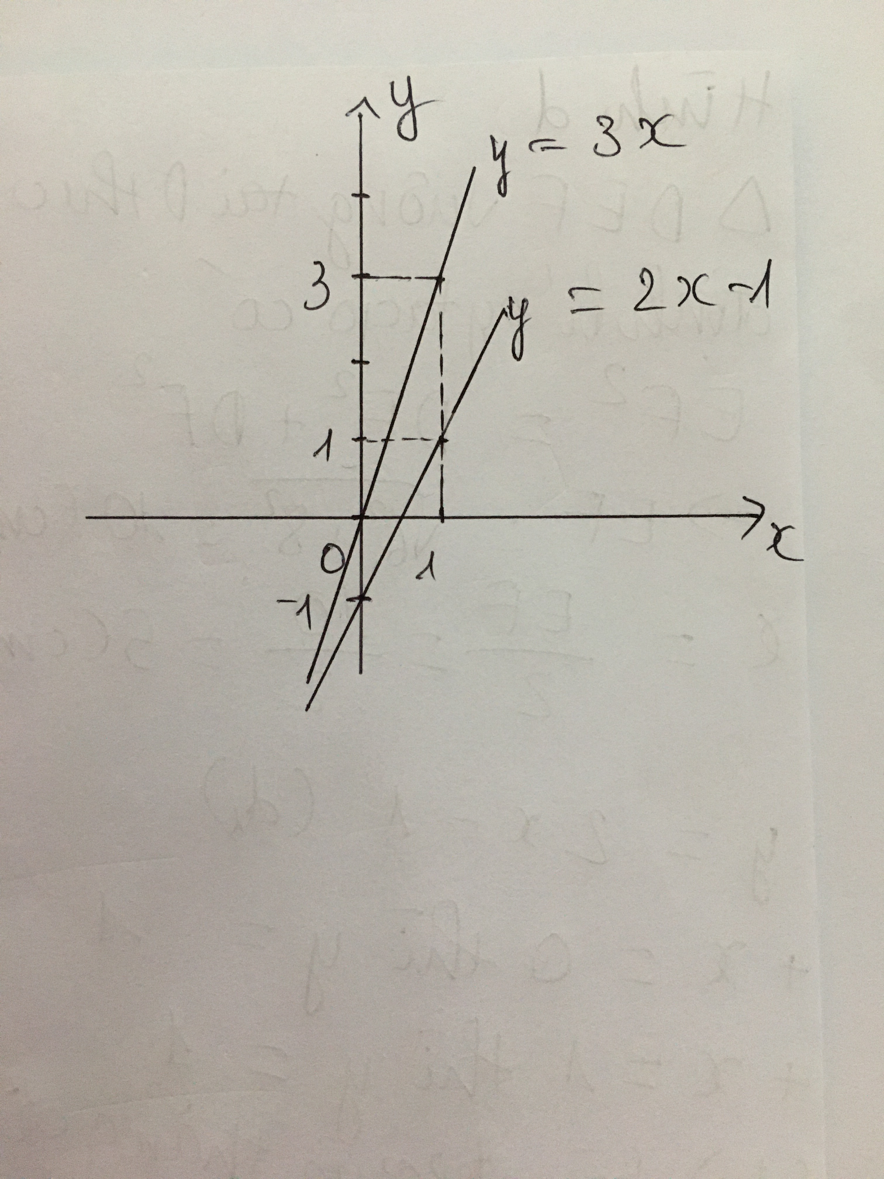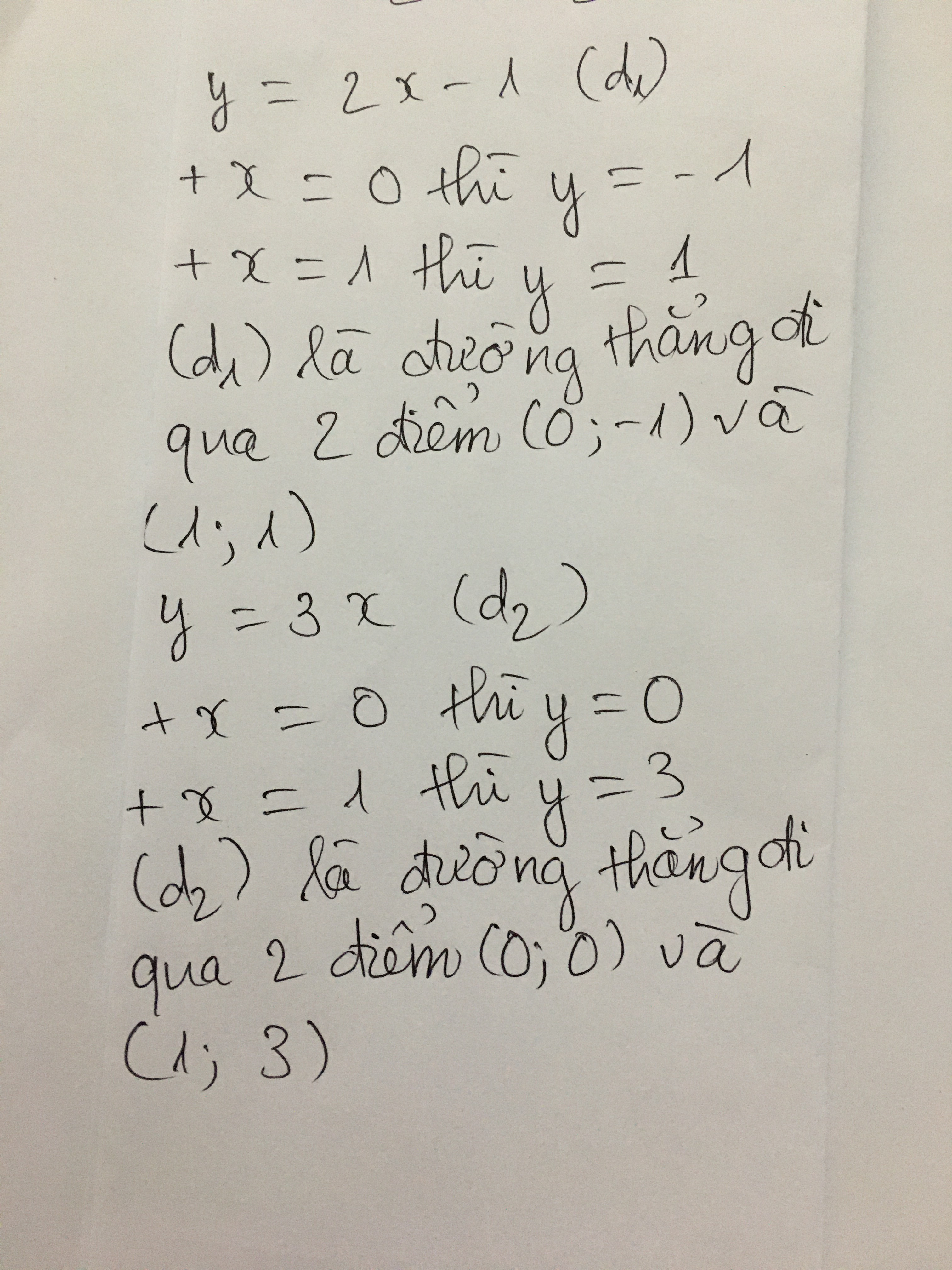 Cho 2 đoạn thẳng (d1)y=2x-1; (d2)y=3x. Vẽ d1 và d2 trên cùng một mặt phẳng toạ độ