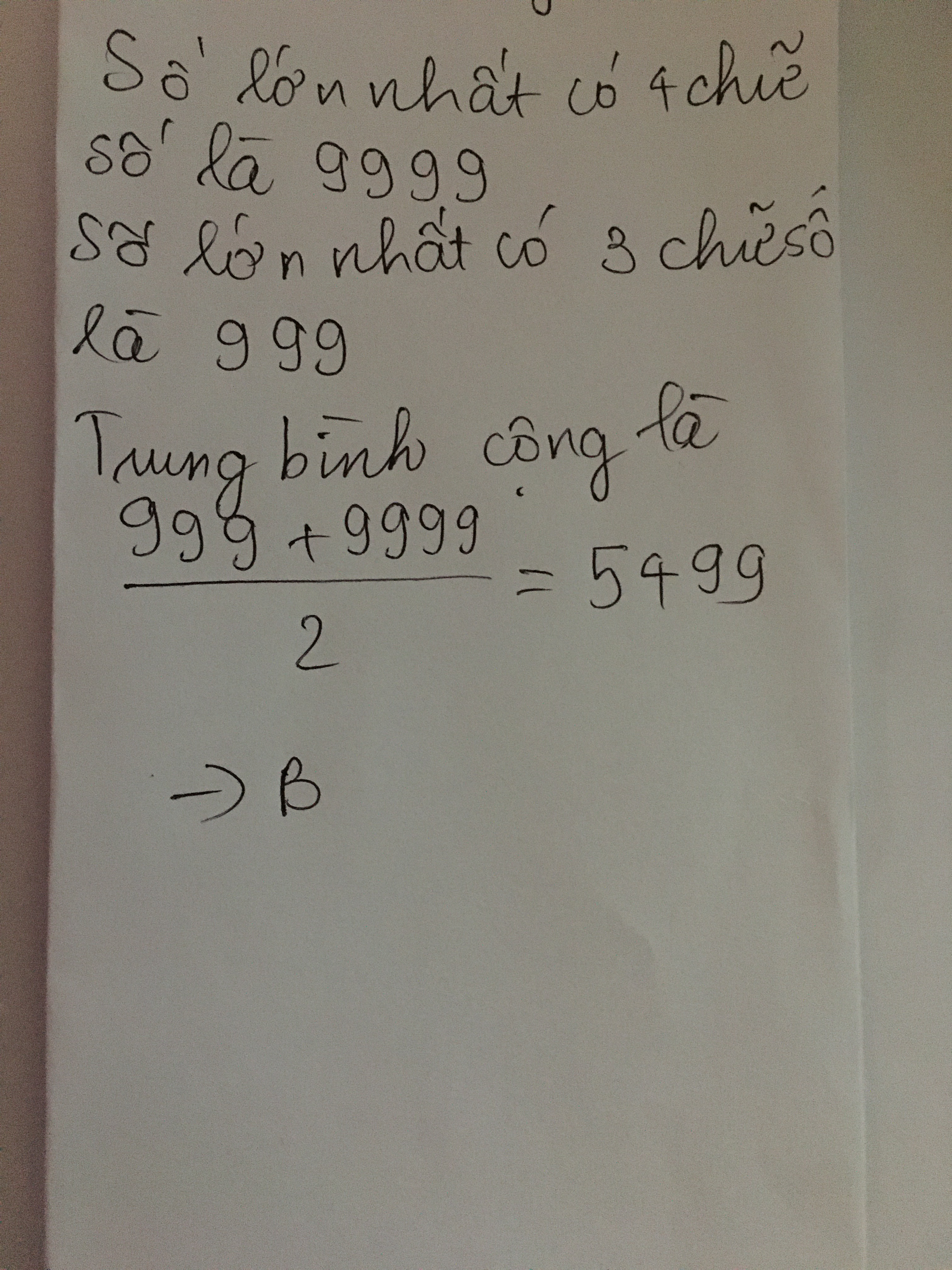 Số trung bình cộng của số lớn nhất có bốn chữ số và số lớn nhất có ba chữ số là: