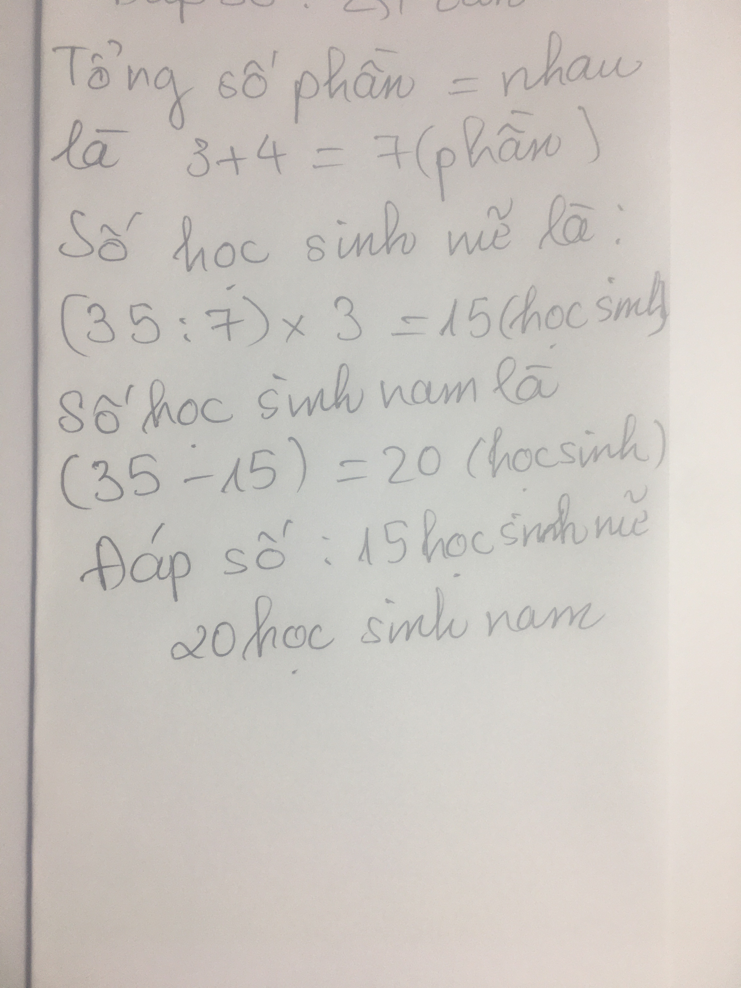 Đáp số: 15 học sinh nam và 20 học sinh nữ