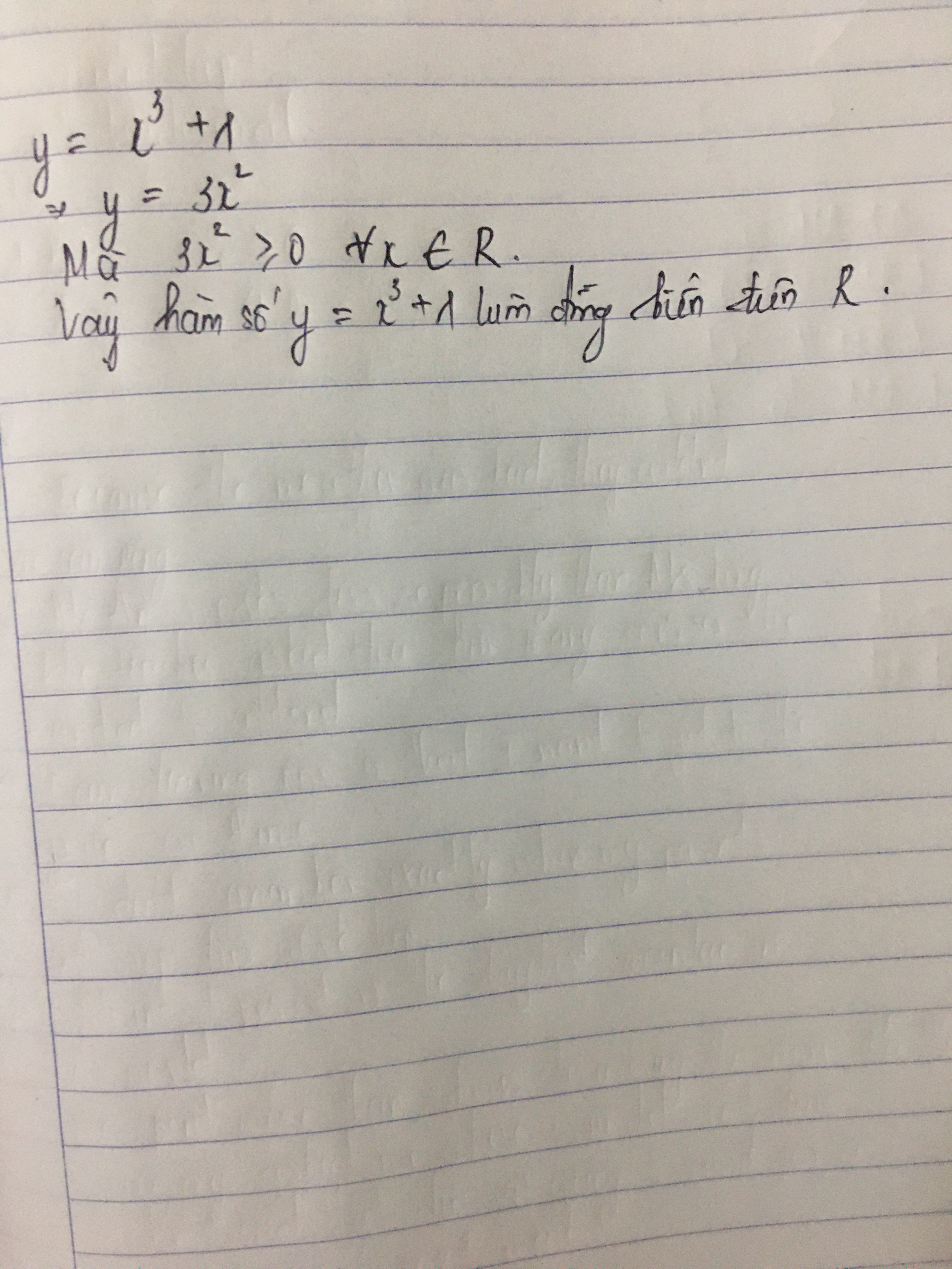 Xét sự biến thiên của hàm số y=x^3+1 trên R