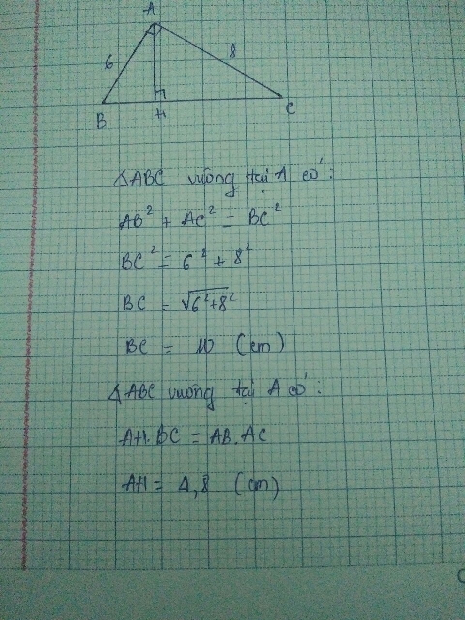 Cho tam giác ABC vuông tại A.biết Ab=6cm.AC=8cm
