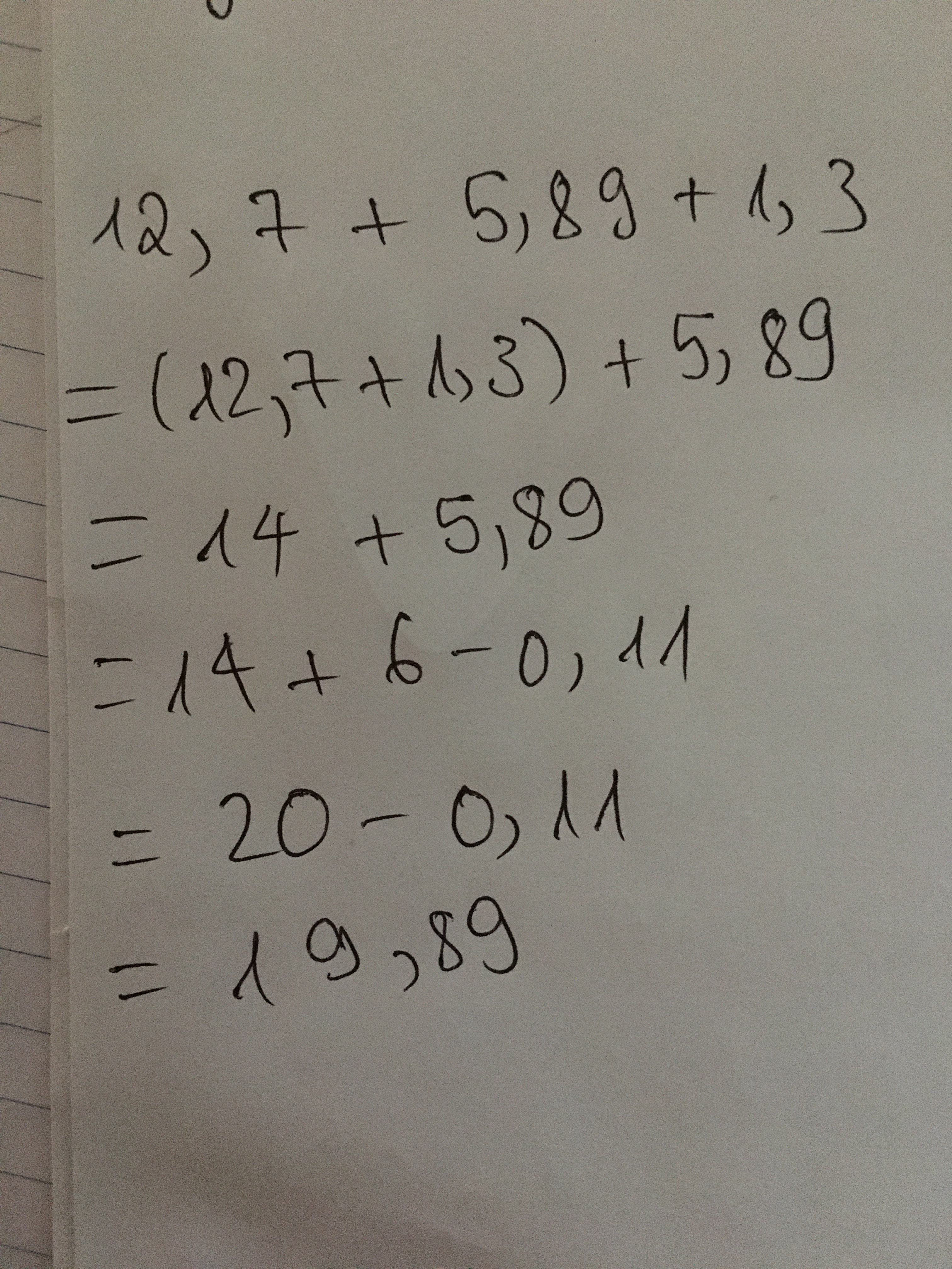 Sử dụng tính chất giao hoán và tính chất kết hợp để tính trong câu sau: 12,7+5,89+1,3
