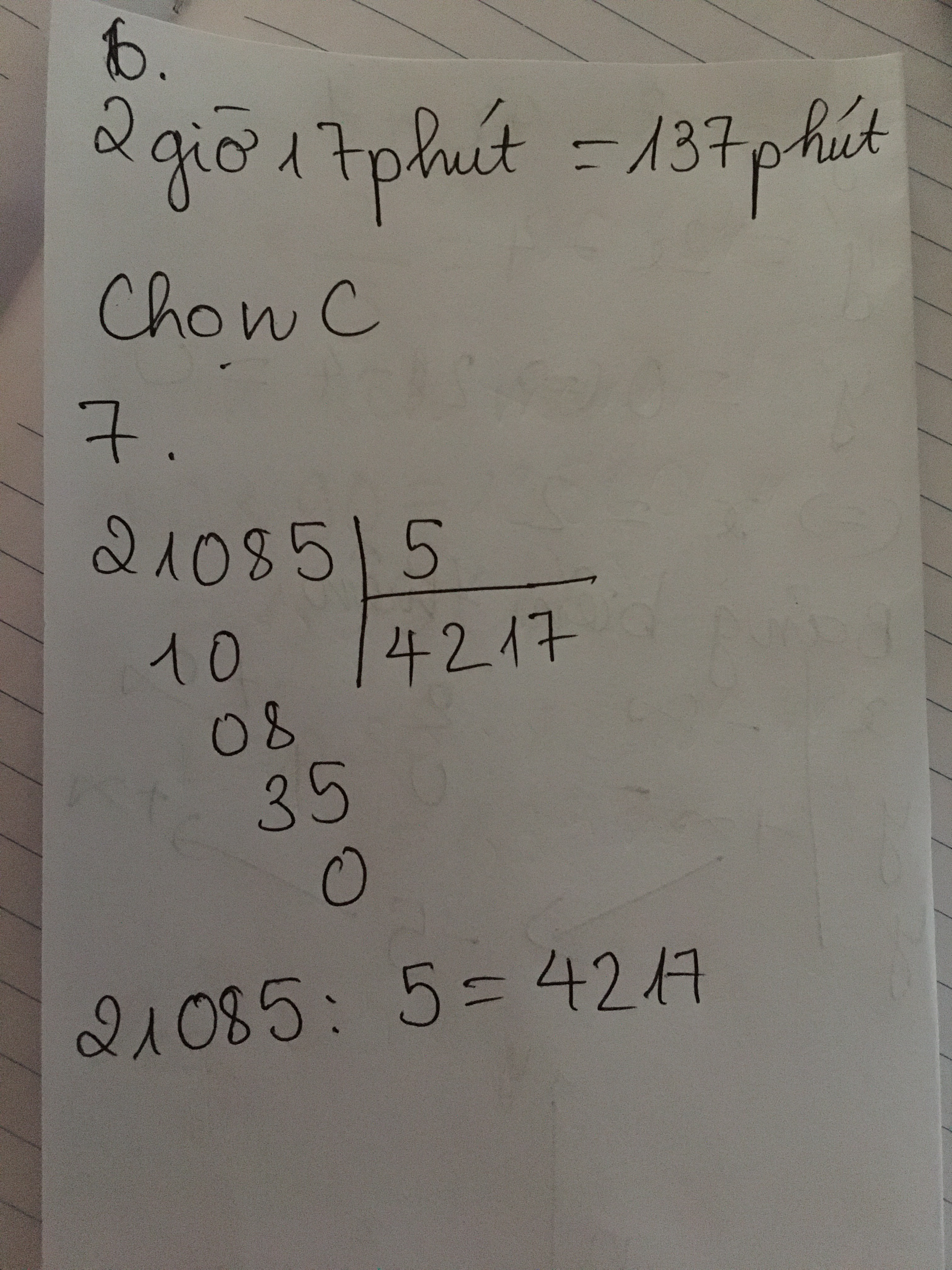 Câu 6: 2 giờ 17 phút = phút