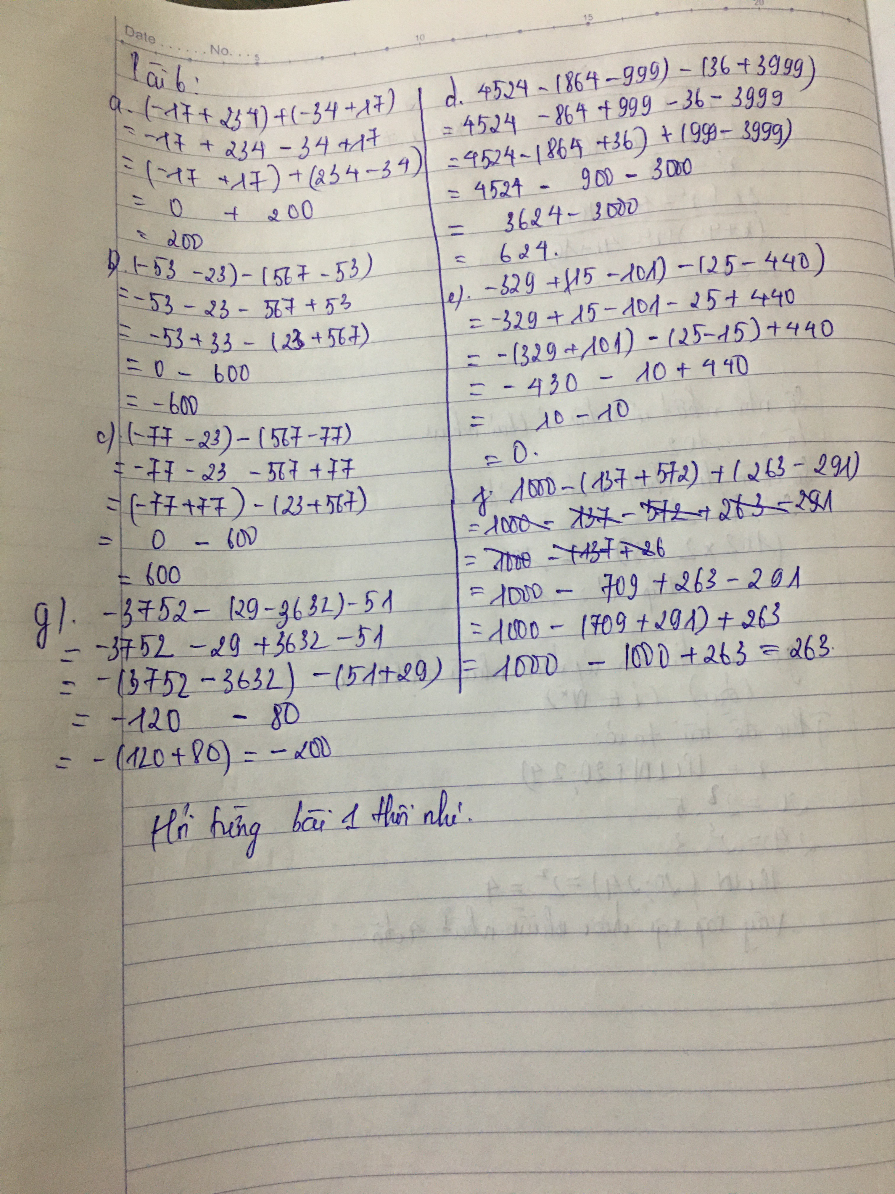 a. (-17 + 234) +(-34 +17)=(-17+17)+(234-34)=0+200=200