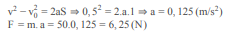 Một vật có khối lượng 50kg bắt đầu chuyển động nhanh dần đều,sau khi đi được 1m thì đạt vận tốc 0,5m/s.Tính lực tác dụng vào vật