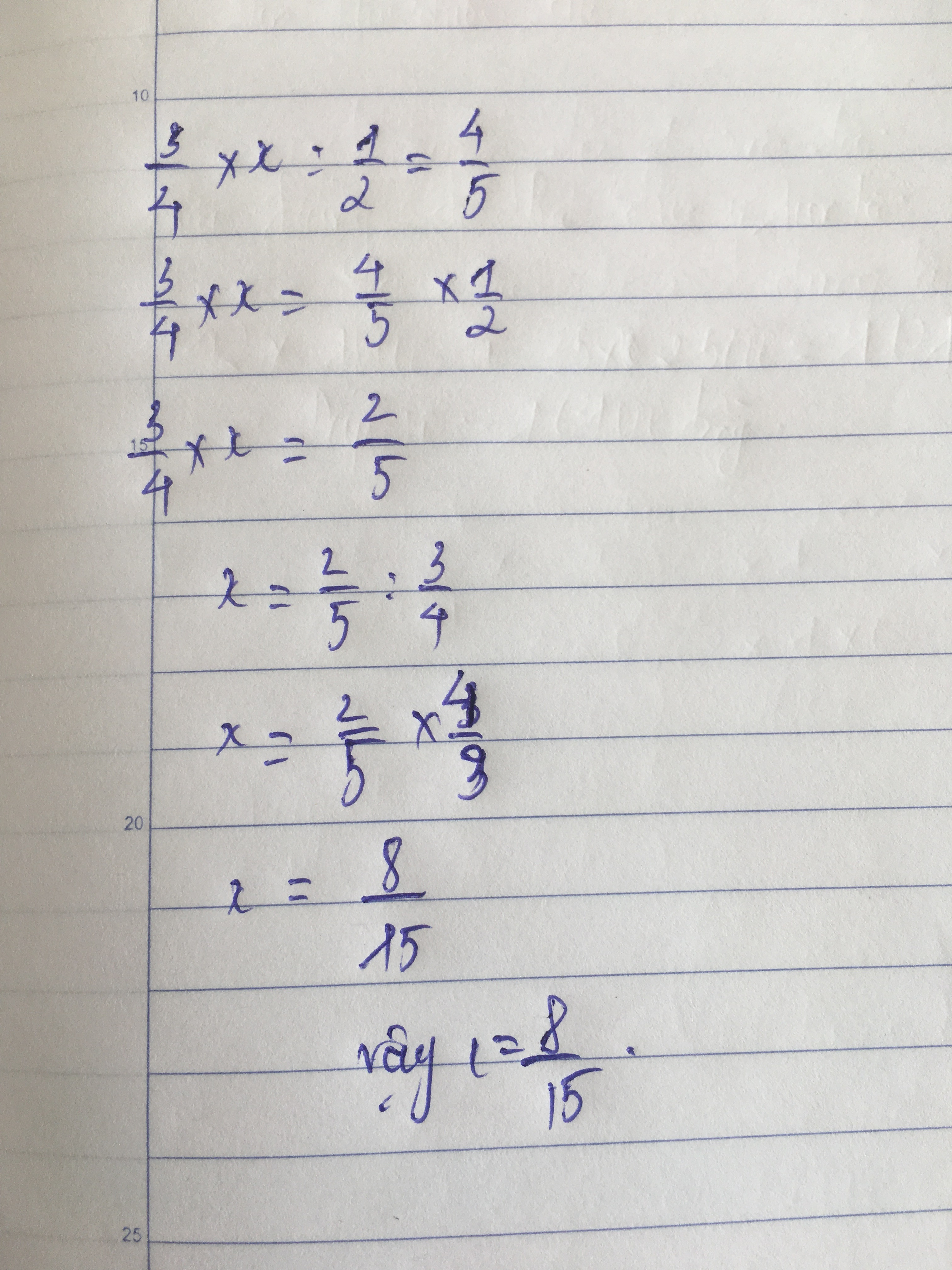 \frac{3}{4} \times x:\frac{1}{2} = \frac{4}{5}\\