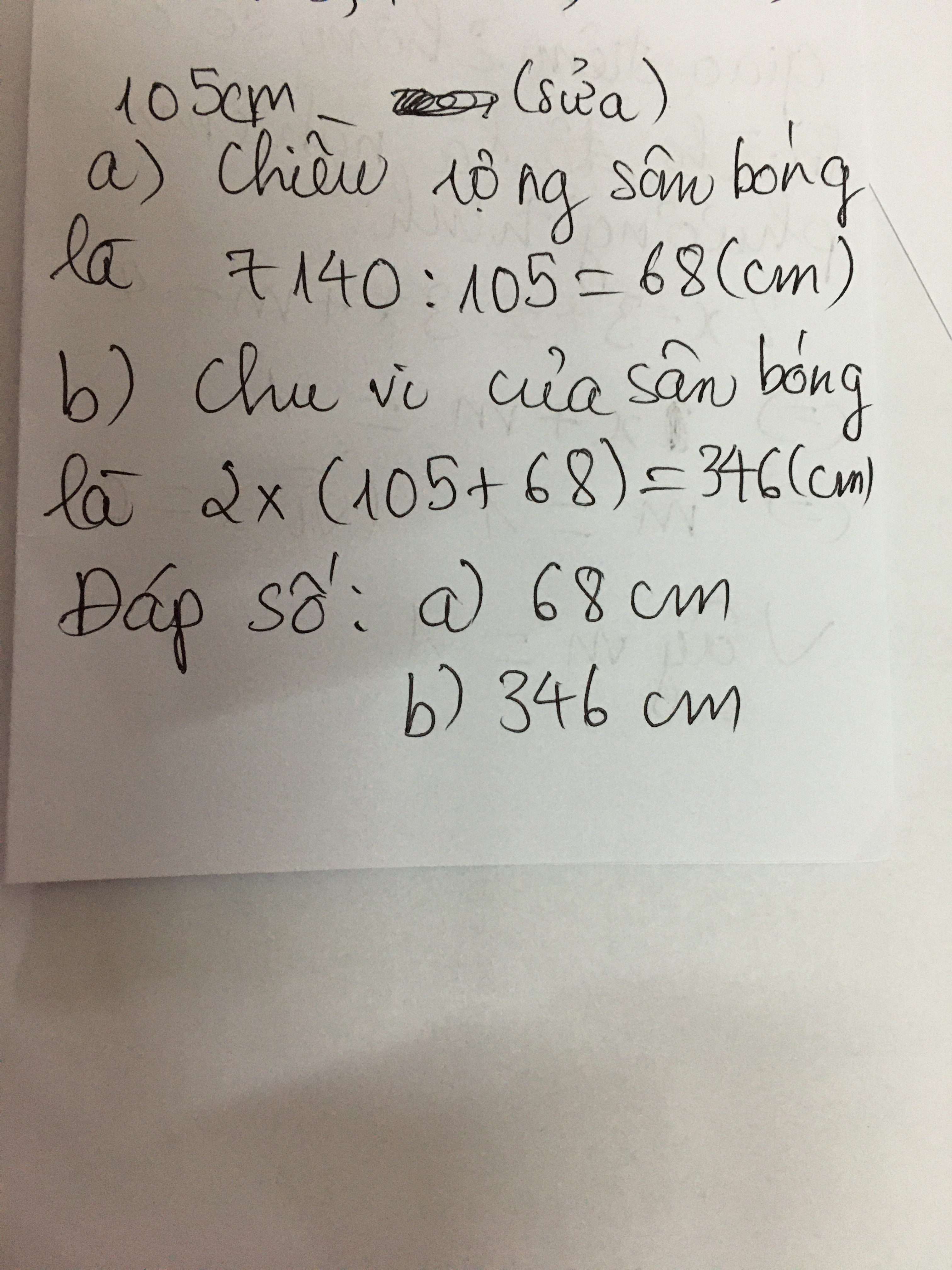 Một sân bóng đá hình chữ nhật 7140 cm vuông , chiều dài 105m.