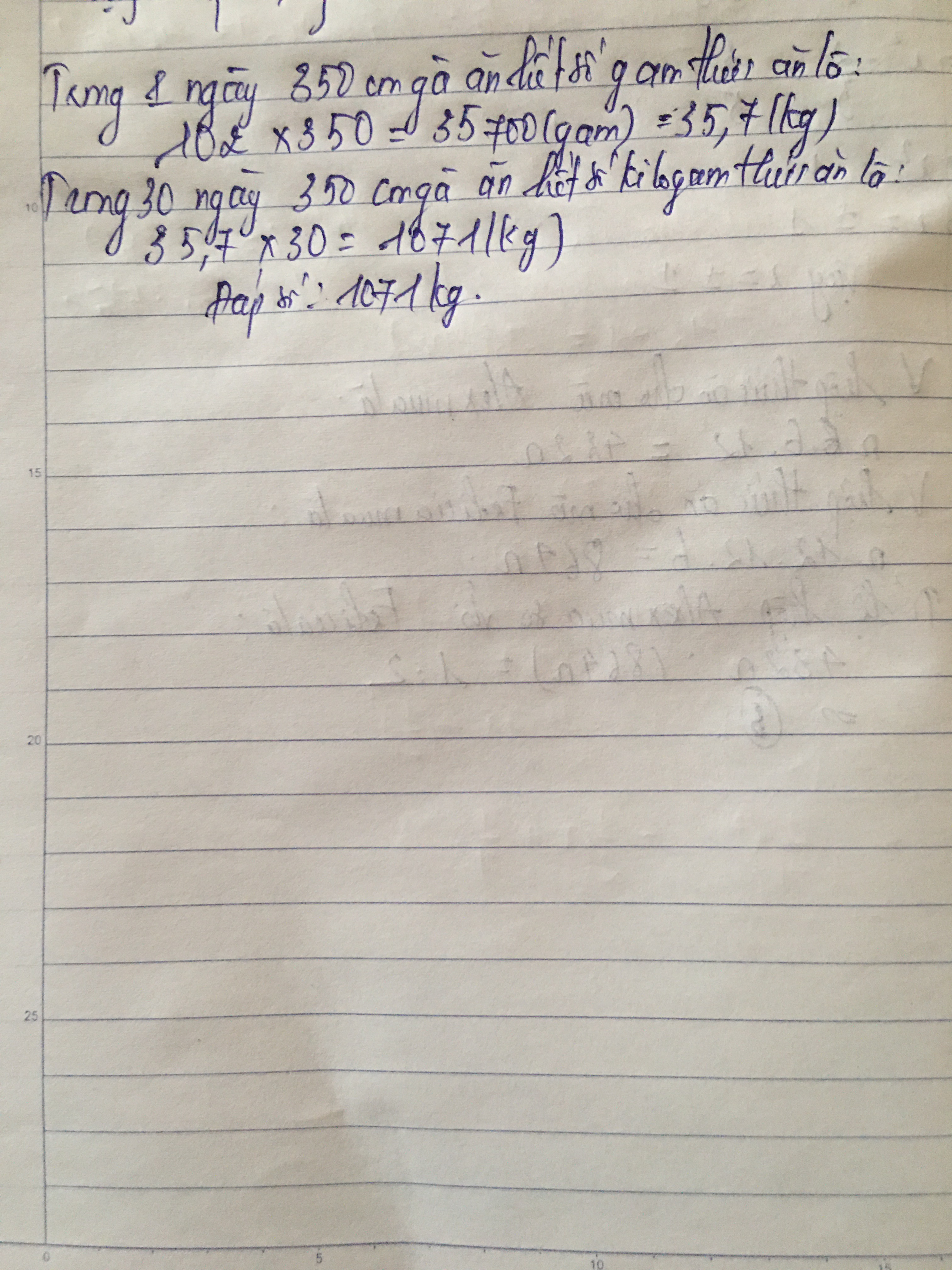 Số thức ăn cho 350 con gà ăn trong 30 ngày là: