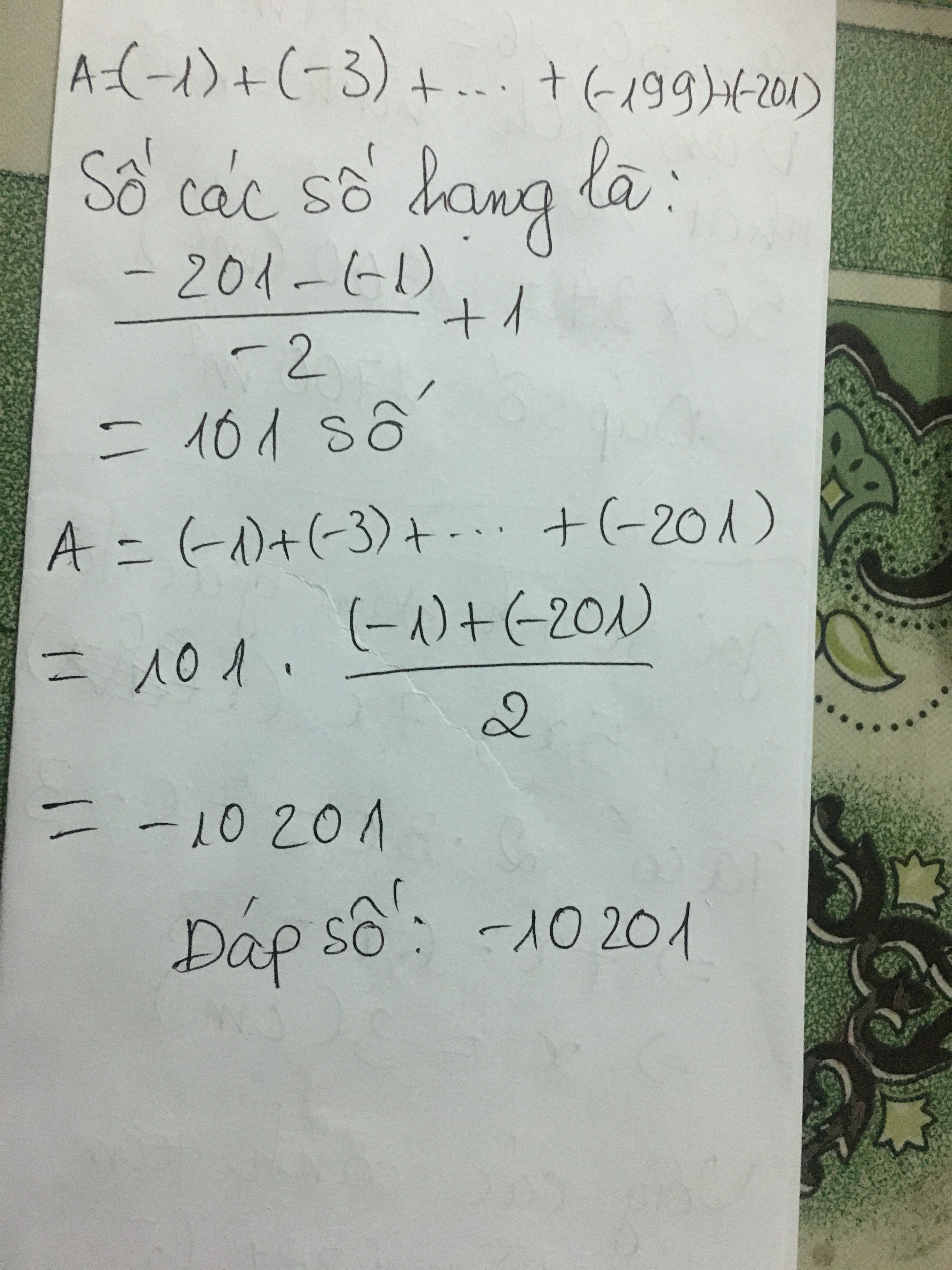 Tổng =[(-1)+(-201)]x101:2=-10201