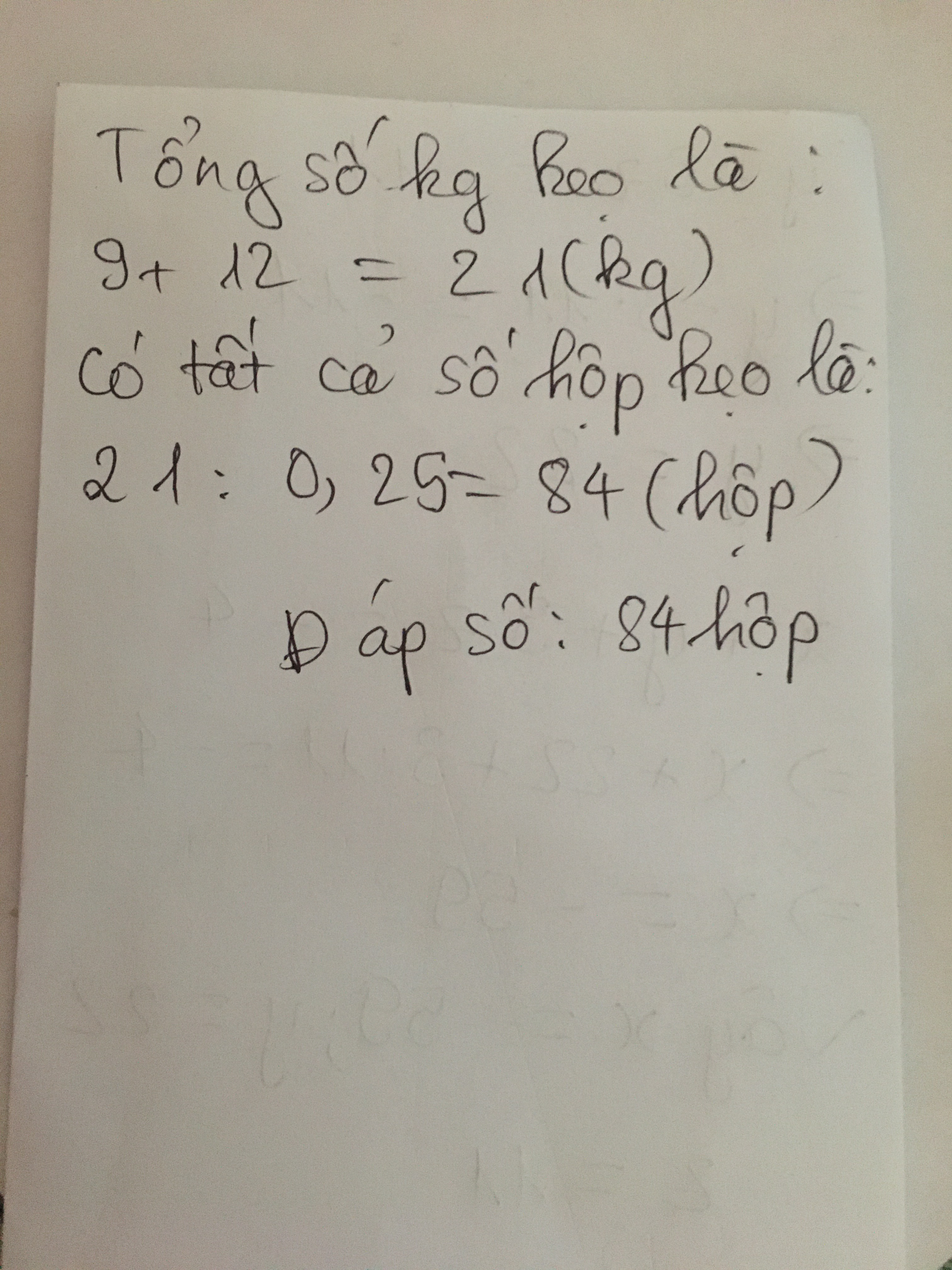 Đáp số: 84 hộp