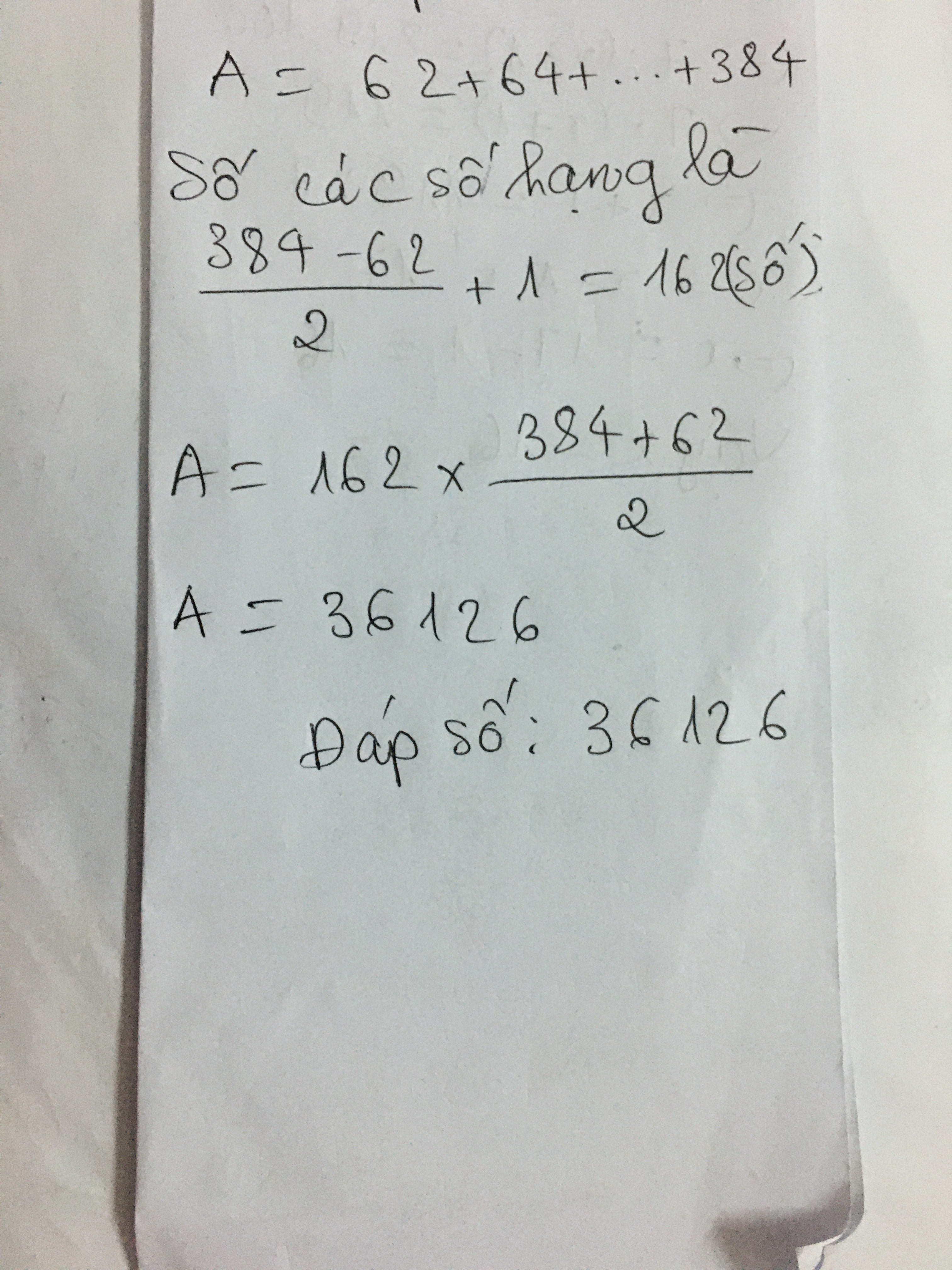 Bài 5: Tính tổng các số chẵn từ 62 đến 384 bằng cách nhanh