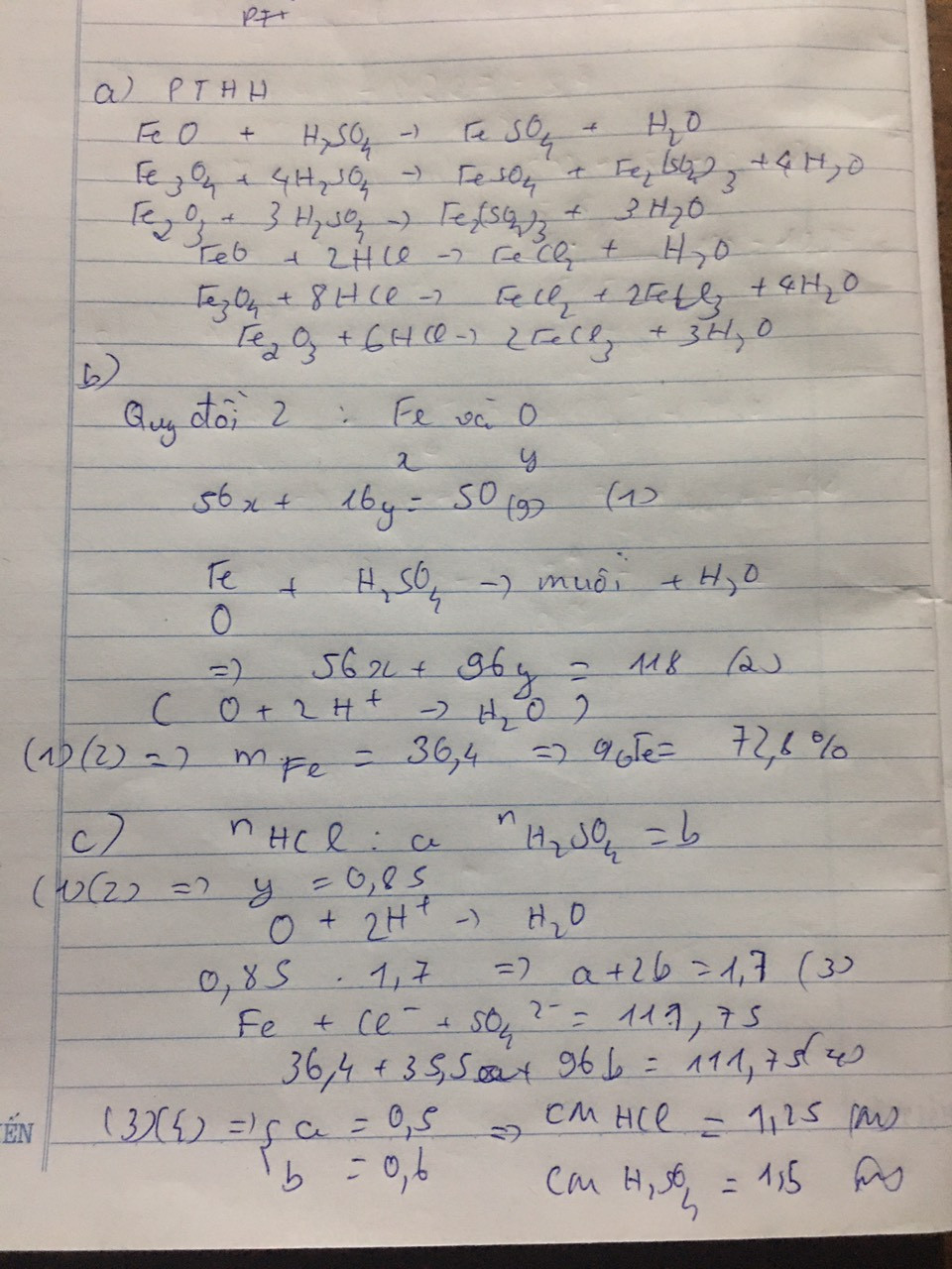 Hỗn hợp Z gồm FeO, Fe3O4 , Fe2O3 . Lấy 100 g Z chia làm 2 phần bằng nhau.