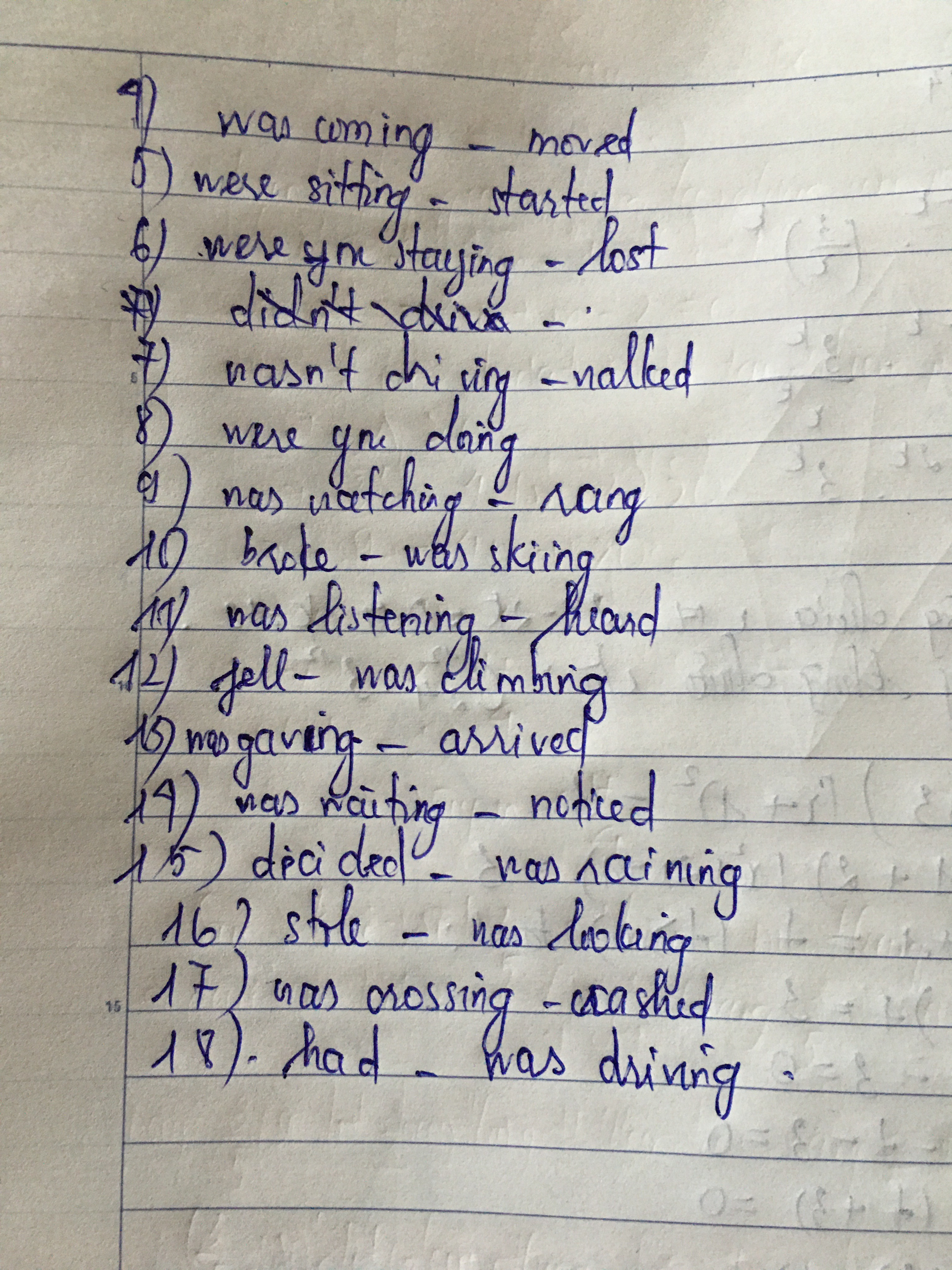 9. I …………television when the phone …………..(watch/ ring) (B4)
