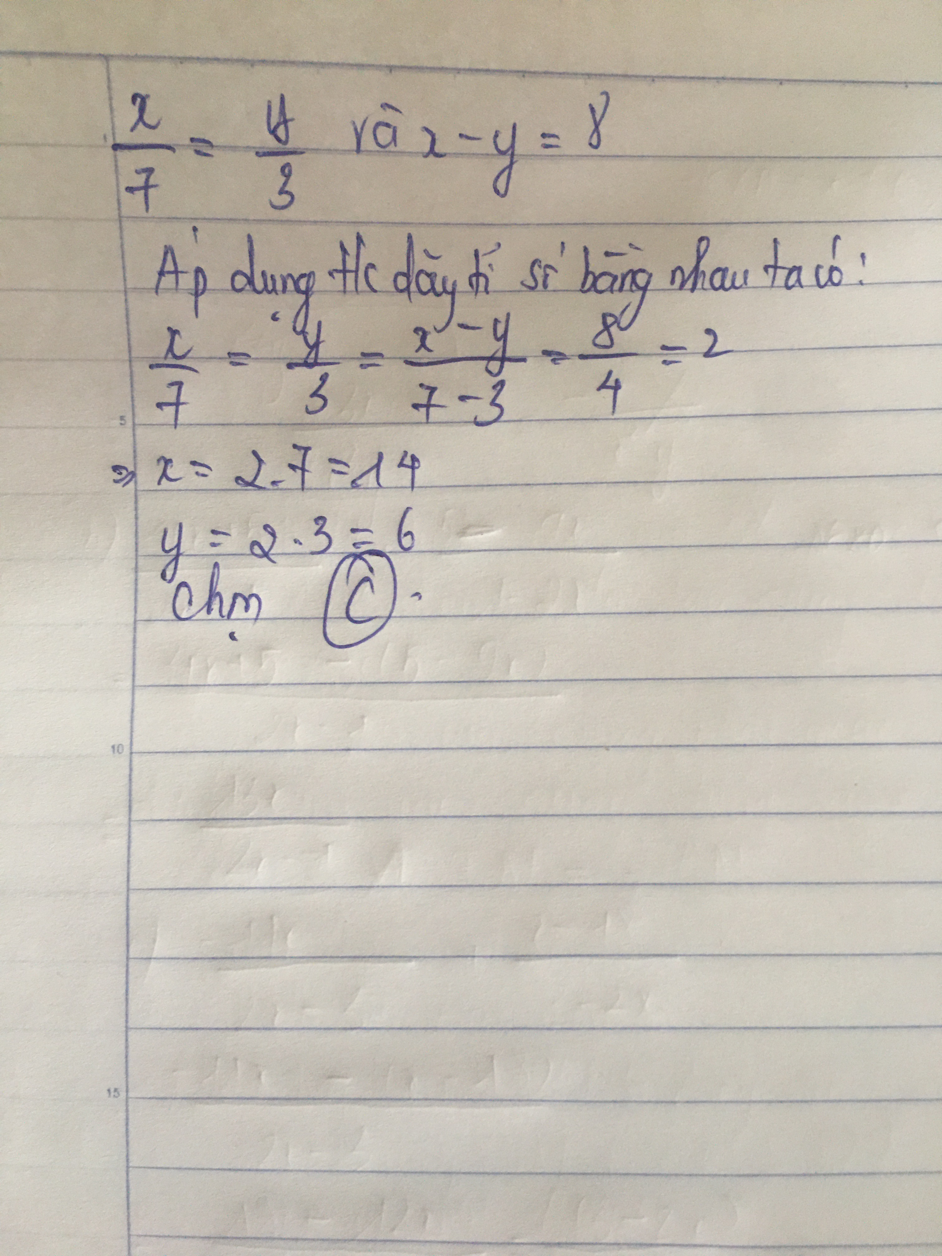 Tìm x,y biết :x/7=y/3 và x-y=8
