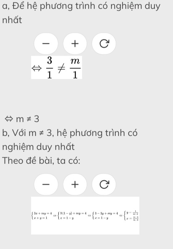 b, Với m ≠ 3, hệ phương trình có nghiệm duy nhất