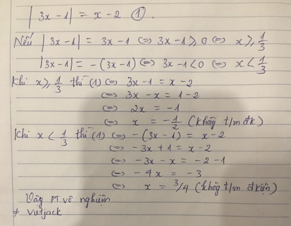 Thử lại thấy hai nghiệm trên đều không thỏa mãn vậy phương trình vô nghiệm