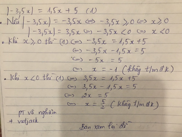 Giải các phương trình: |-3,5x| = 1,5x + 5