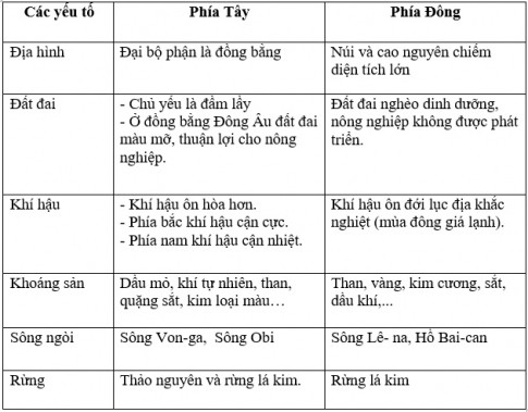 Địa hình: chủ yếu là đồng bằng, đồng bằng Đông Âu và Tây Xi-bia. Dãy núi già Uran.