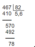 Vậy 467:82=5,6 dư 7,8