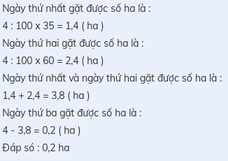 vậy ngày thứ 3 đội đó gặt 4*5%=0.2(hecta)