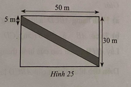Bạn An có một mảnh đất dạng hình chữ nhật kích thước 50m x 30m. Bác dự định làm một con đường ngang qua (phần tô đậm) có kích thước như trong Hình 25. Hãy giúp bác An tiết kiệm diện tích con đường và phần đường còn lại của mảnh đất.