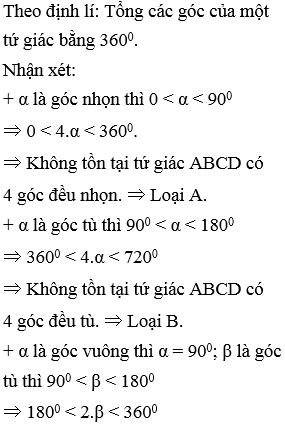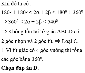 C. Tứ giác ABCD có hai góc vuông và hai góc tù